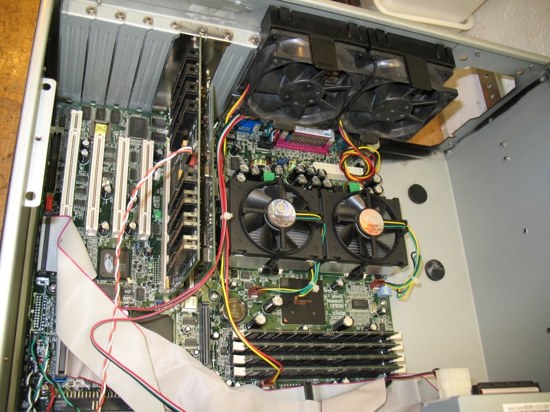 It was a bitch running all the cables. I would have used SATA drives, but I already had 3 of the PATA ones, so I just bought 6 more. SATA RAID cards also cost a lot more, and I needed to build this on a serious budget.