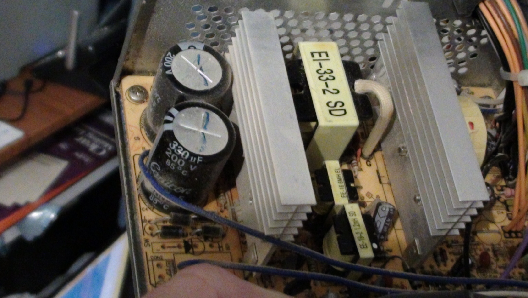 I took the PSU apart. The caps physically look good. It's gonna be a pain to get to the board so I can remove them to test them. At first, I thought it had some Rubicon caps. But at closer examination, they're Micon. It's weird because the font on them is very similar to a Rubicon.