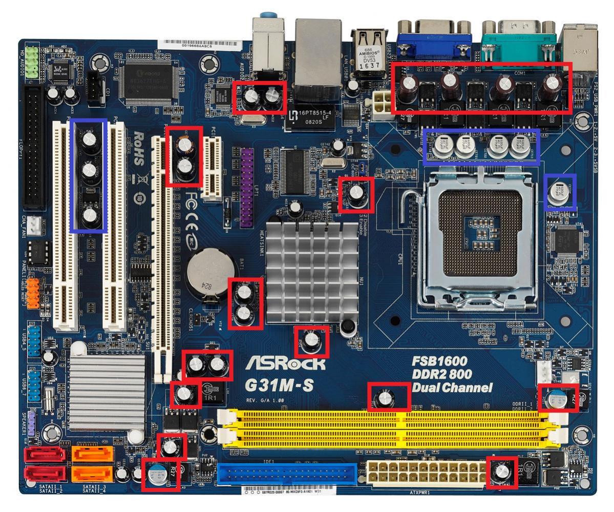 A bit weird motherboard here. With the caps removed, the mask for the caps have the normal half shaded / half not shaded stuff. But with the old caps, the line that marks what I think is the cathode side goes to the non-shaded side. I've always seen it where the shaded side on the board represents the cathode side. I can use my DMM to check continuity on the pad and see if I can verify the shaded is not the cathode side.