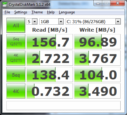 That explains it, a single 250GB Seagate is faster at 151MB/s but that's Sata 3.