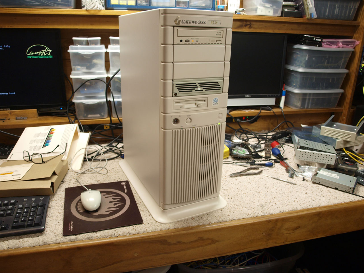 The motherboard to be used is a KFN5-D SLI that was an ebay rescue sometime early this year...had bad caps; the seller knew it.....and was basically selling it for peanuts + the cost of shipping....and it's not a very common board, so I grabbed it. It has a pair of Opteron Barcelona quadcores @ 2.5GHz; the fastest it can take. This board does not support Shanghai cores. I added 64gb ECC RAM, ECC DDR2 is silly cheap these...