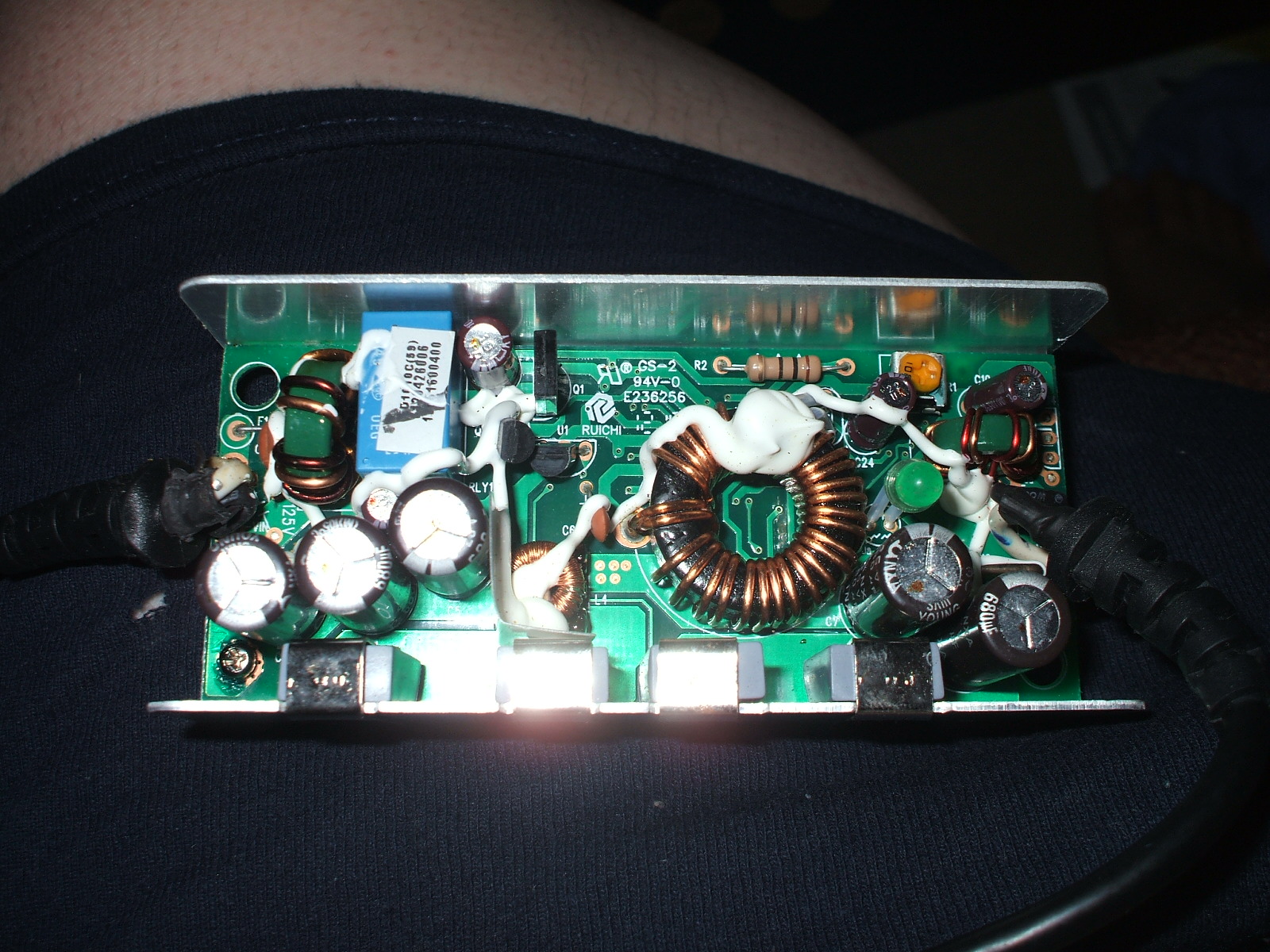 I originally though I bombed the charger so I open it up... nope, all looks good (actually had decent construction aside from Sam Young caps). After bible study I test it with my wall charger... flicker flicker