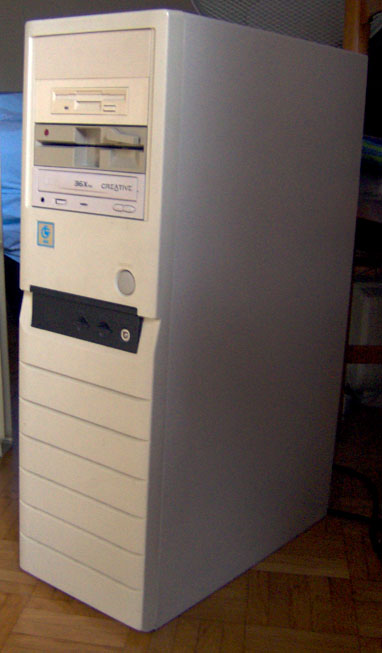 it's my Win98SE retro gaming system (with a GeForce 2 GTS (32MB DDR) and 2 Voodo II 12MB in SLI + a classic Soundblaster 16 ISA (non-PnP)