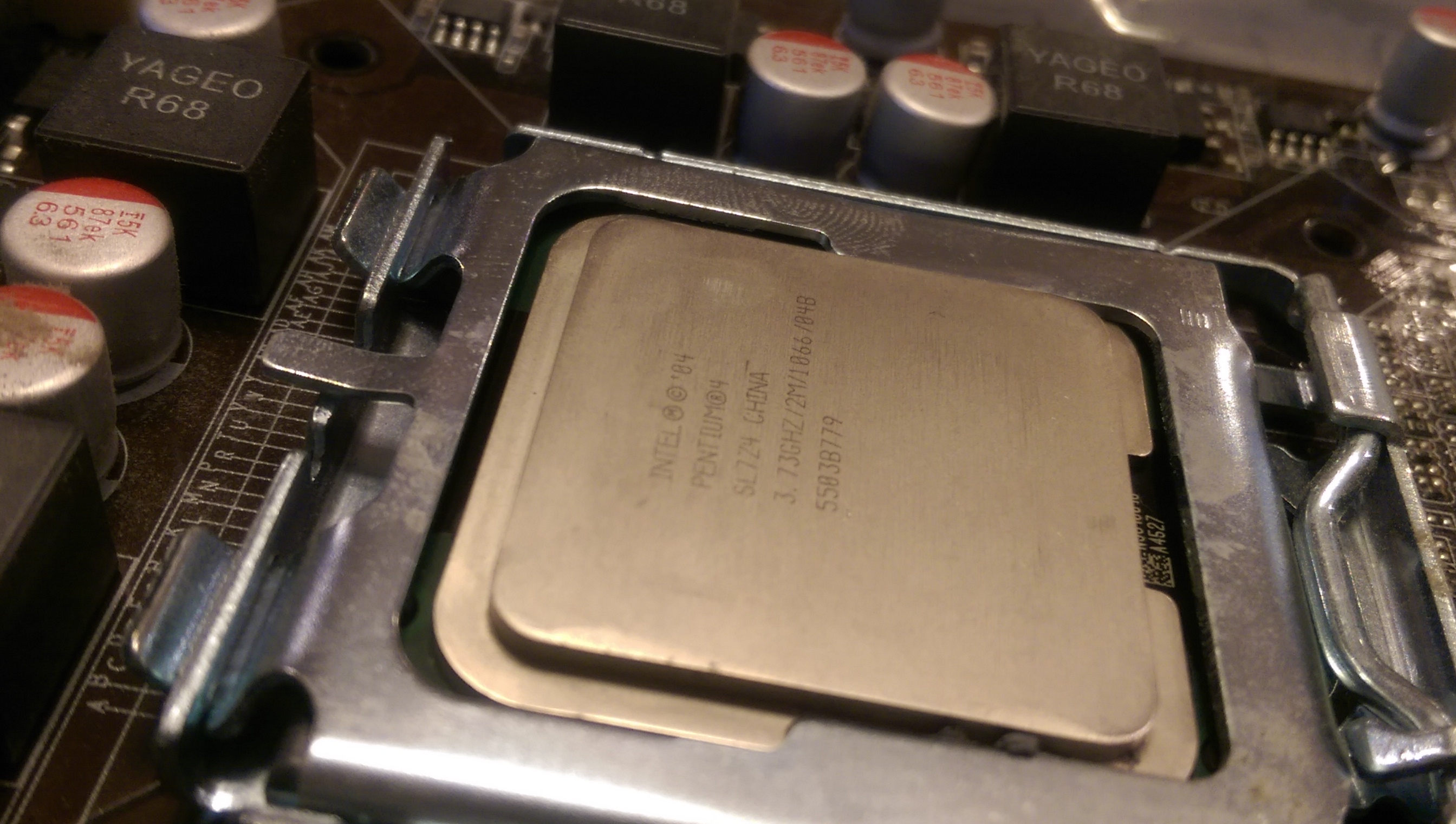 I have the highest end P4 made, the 3.73GHz Extreme Edition one with a 1066 FSB. I have it in my Asus P5QL-PRO board with 8GB of dual channel 1066MHz DDR2. As you can see, I have a massive beast heatsink on there. It does well. Sitting at 50% CPU usage, the CPU gets to about 46C. Not bad considering it's a massive power hog.