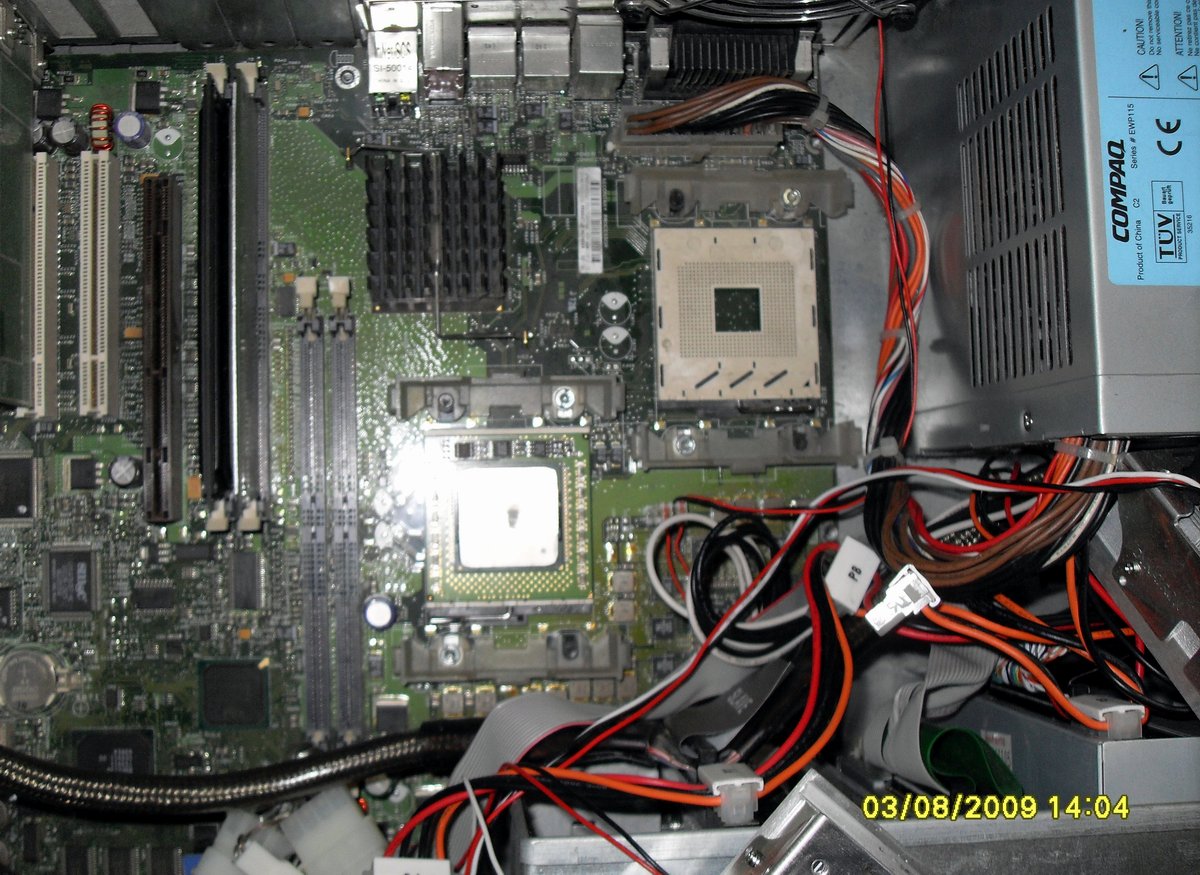 Dual 1ghz, 2 gig of RAM, I think. Not sure of the drives. It's slated to be replaced this year...