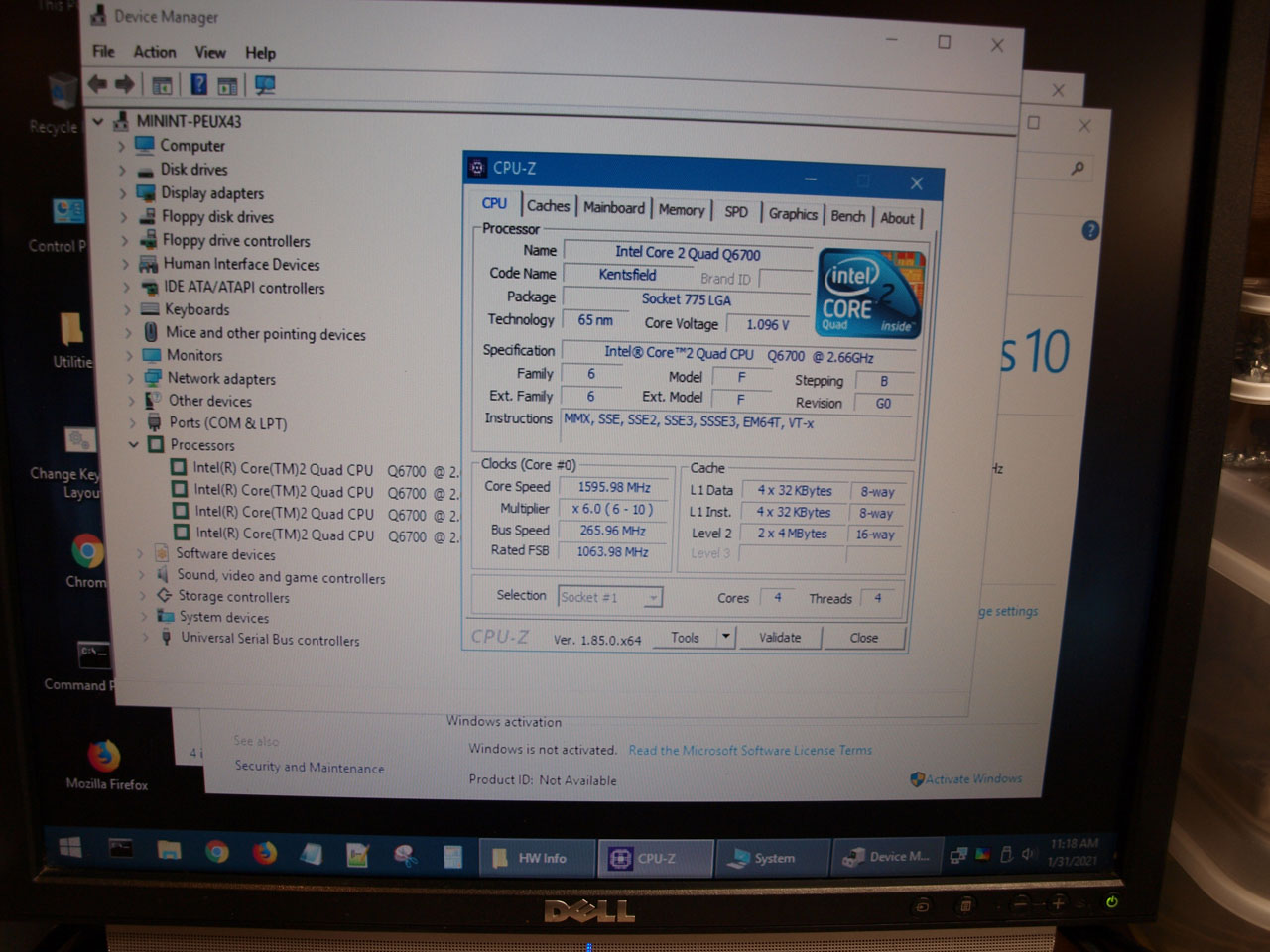 but the Q865 chipset is capable of 1066 FSB and C2/C2Q CPU's.....so lets look in the drawer with probably ~100 LGA-style CPU's in it....and yay! Found right on top of the pile a Q6700! Plopped it in the socket, attached the sink, and bazinga!