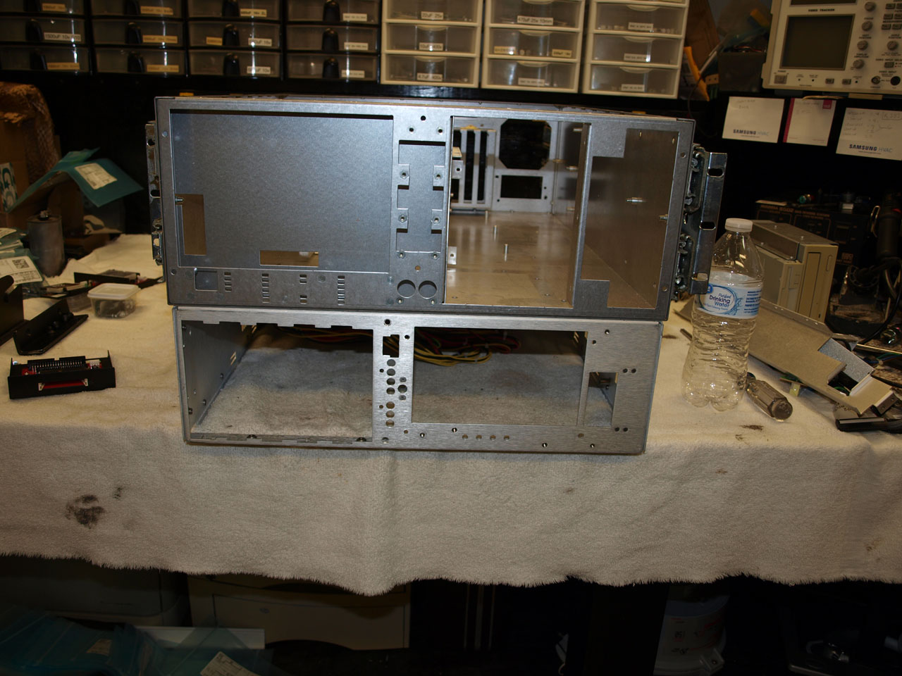 Now for the next mod....this will no longer be used/needed as a SBC. The backplane and backplane tray have been removed and now its time to remove the card slot bracket. This is riveted in. I drilled out as many as I could from the inside of the case, but the ones along the bottom & left side edges were not accessible for drilling and had to be ground from the outside with a dremel.