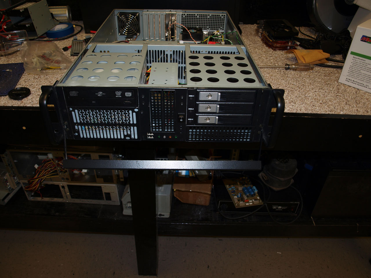 I had to slip everything back into the rack, and get it out of the way....