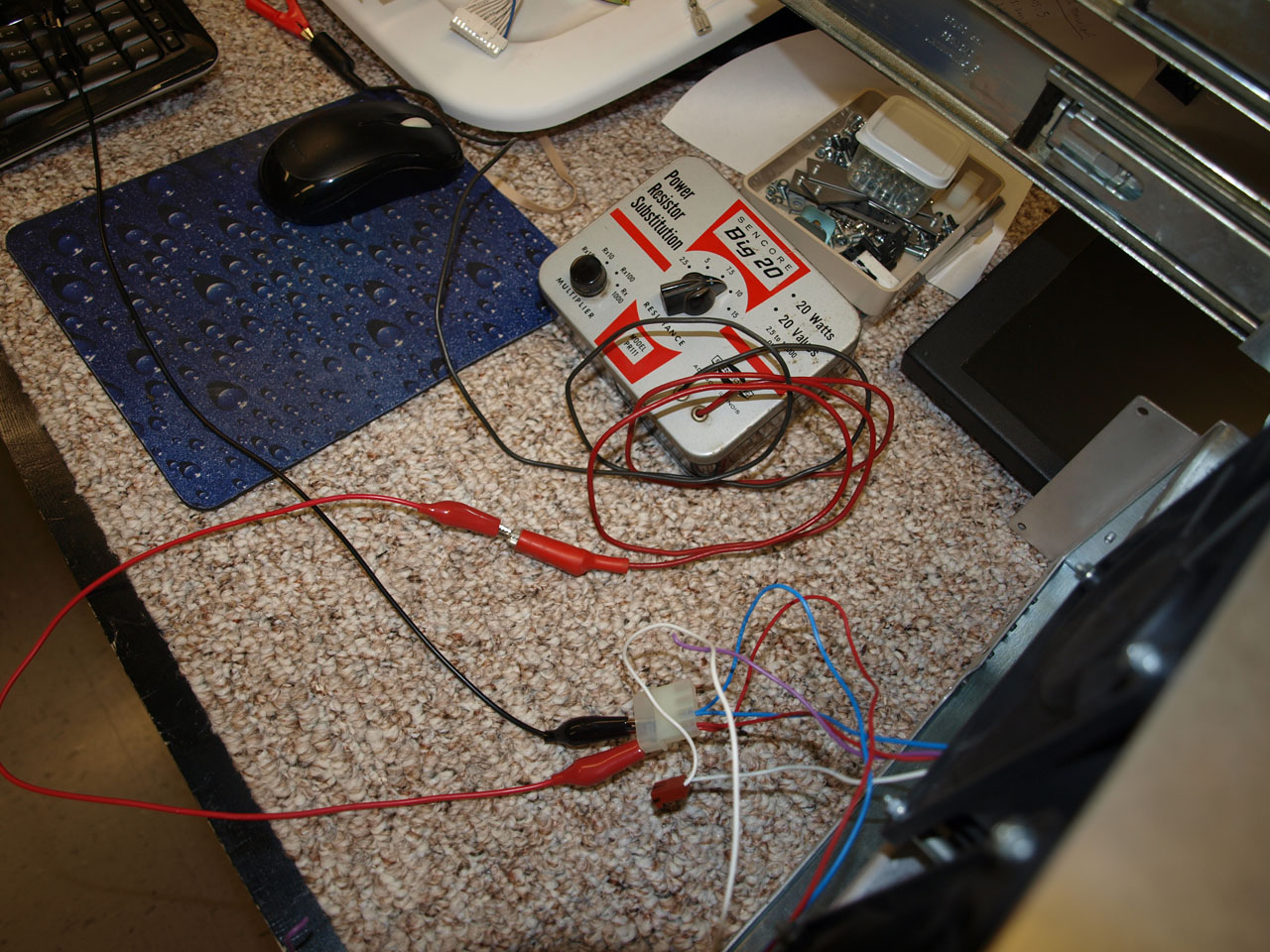 Next is to see what resistance variable resistor I need to slow these fans down a little. At 12v, they're obnoxiously loud, and move a LOT of air! There will be situations where that kind of air flow may be needed, so I want them to be controllable....but 5v won't even start them. This is where a ~50yr old resistor subber (aka "decade box") comes in super handy; especially this one, it's made for higher wattage testing; sporting 20w internal wirewounds. The happy place seemed to be 10 ohms; which yielded a forward voltage of 7.8v. At this speed, they still moved a lot of air, but were significantly quieter.