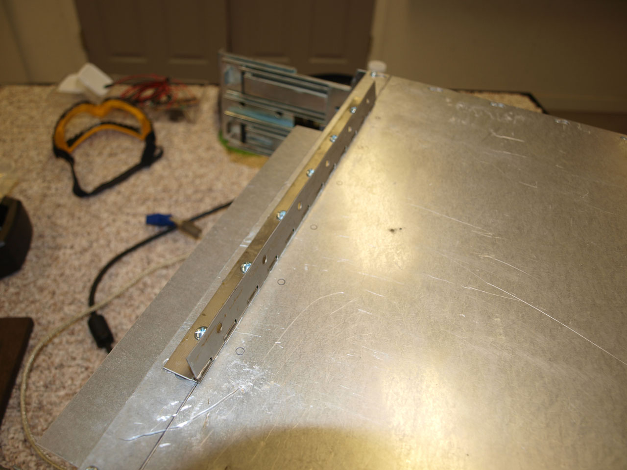 At it again today. I decided to do the lid first, mainly because I already know in my head how I want it to work. The front panel I still have a little design work to do and didn't want to start cutting on it until I'm sure....but the upside of the front panel, if I screw it up, I can replace it....it's just a 7U metal plate, it can be bought all day long. The lid, I get one shot at....and here we go!!
