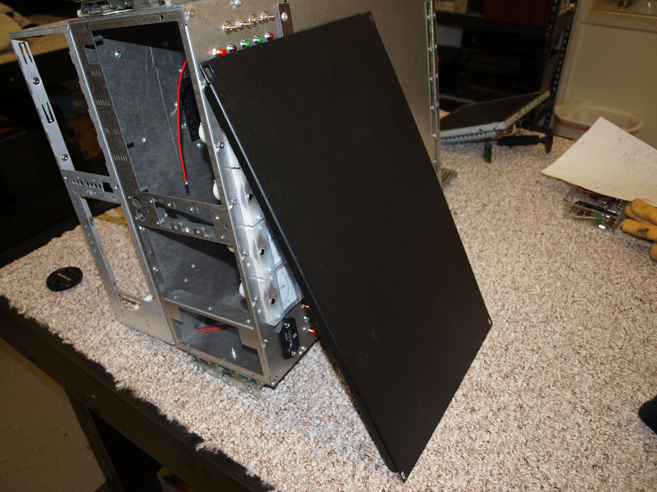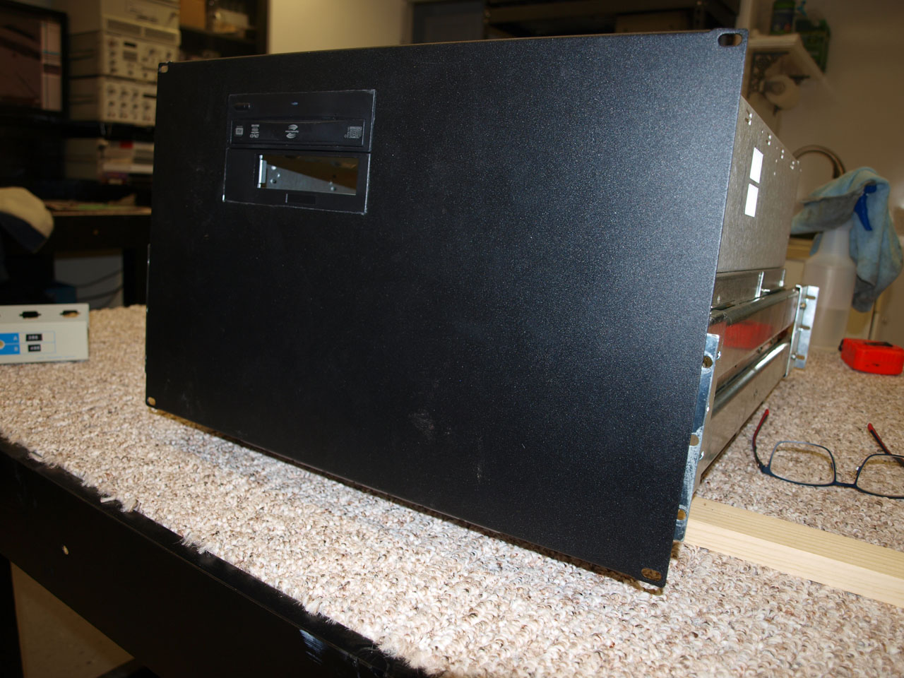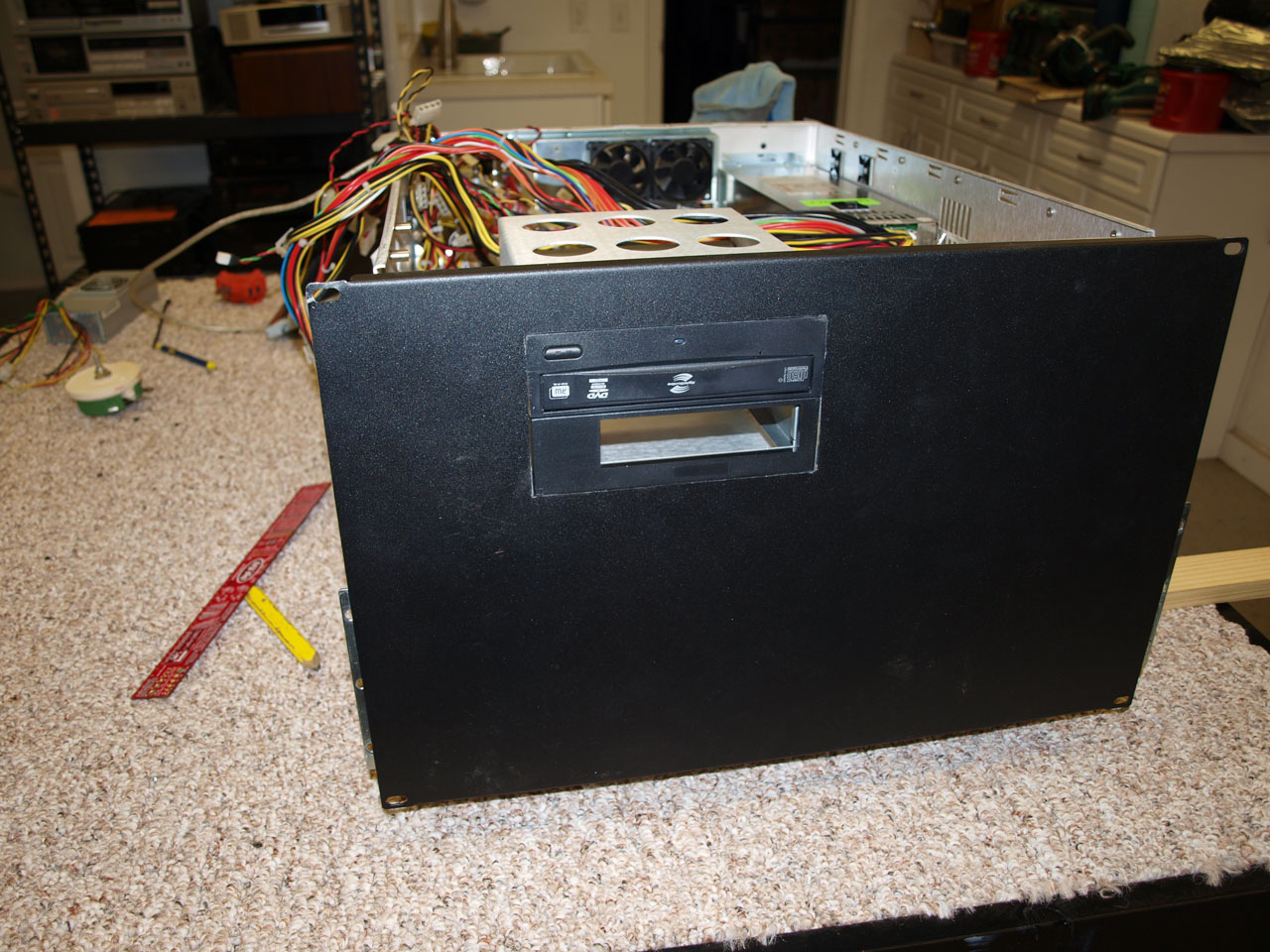 I didn't accomplish anything astonishing today....but I did get a little done. Laying out some things for the front panel. First thing was a bay for 2x 5.25" drive mounts. I'm using the original Dolby 5.25" cage & case opening....but there's a problem....the Dolby cabinet is now upside down.... ...so this took a little re-engineering.