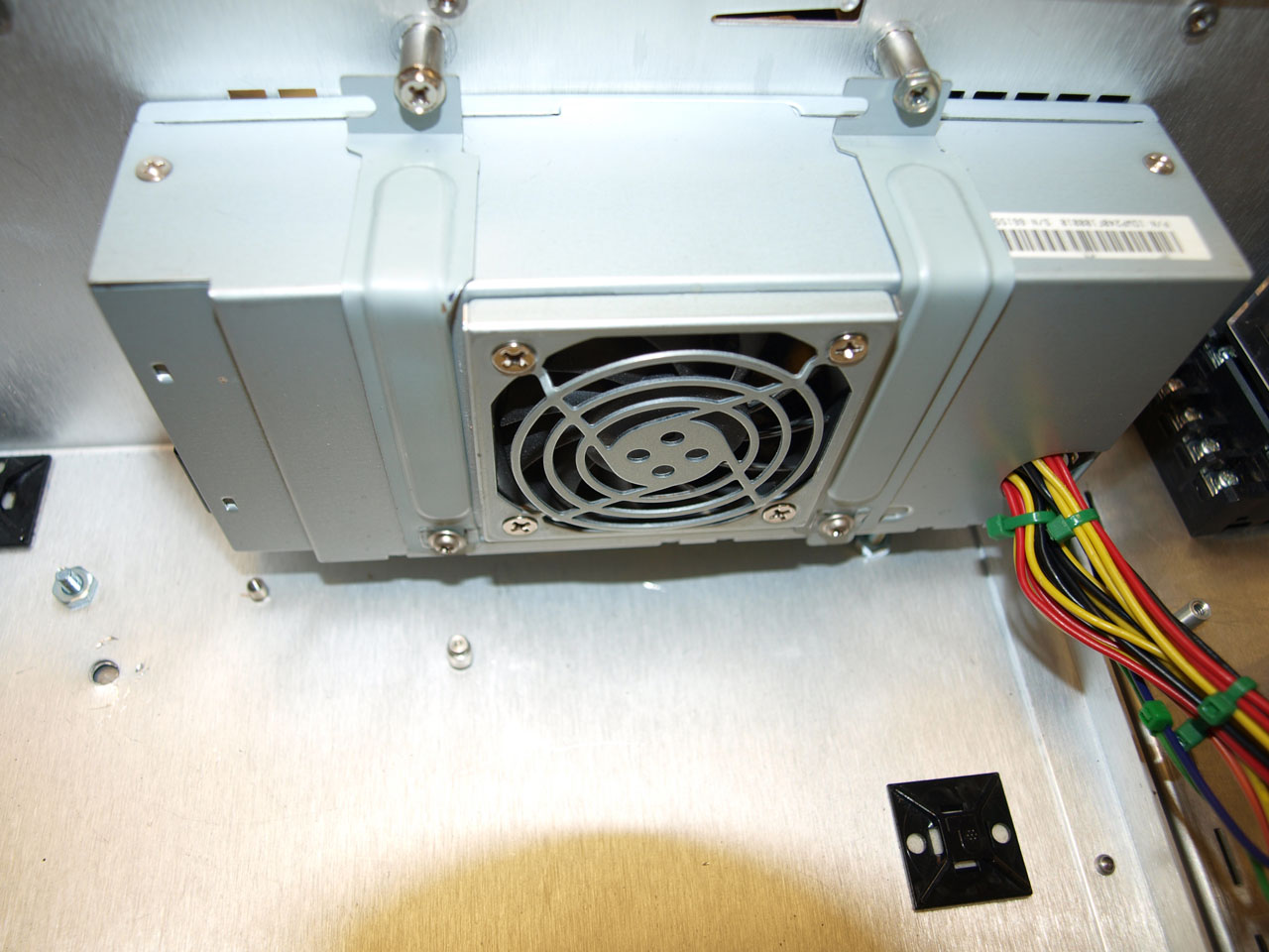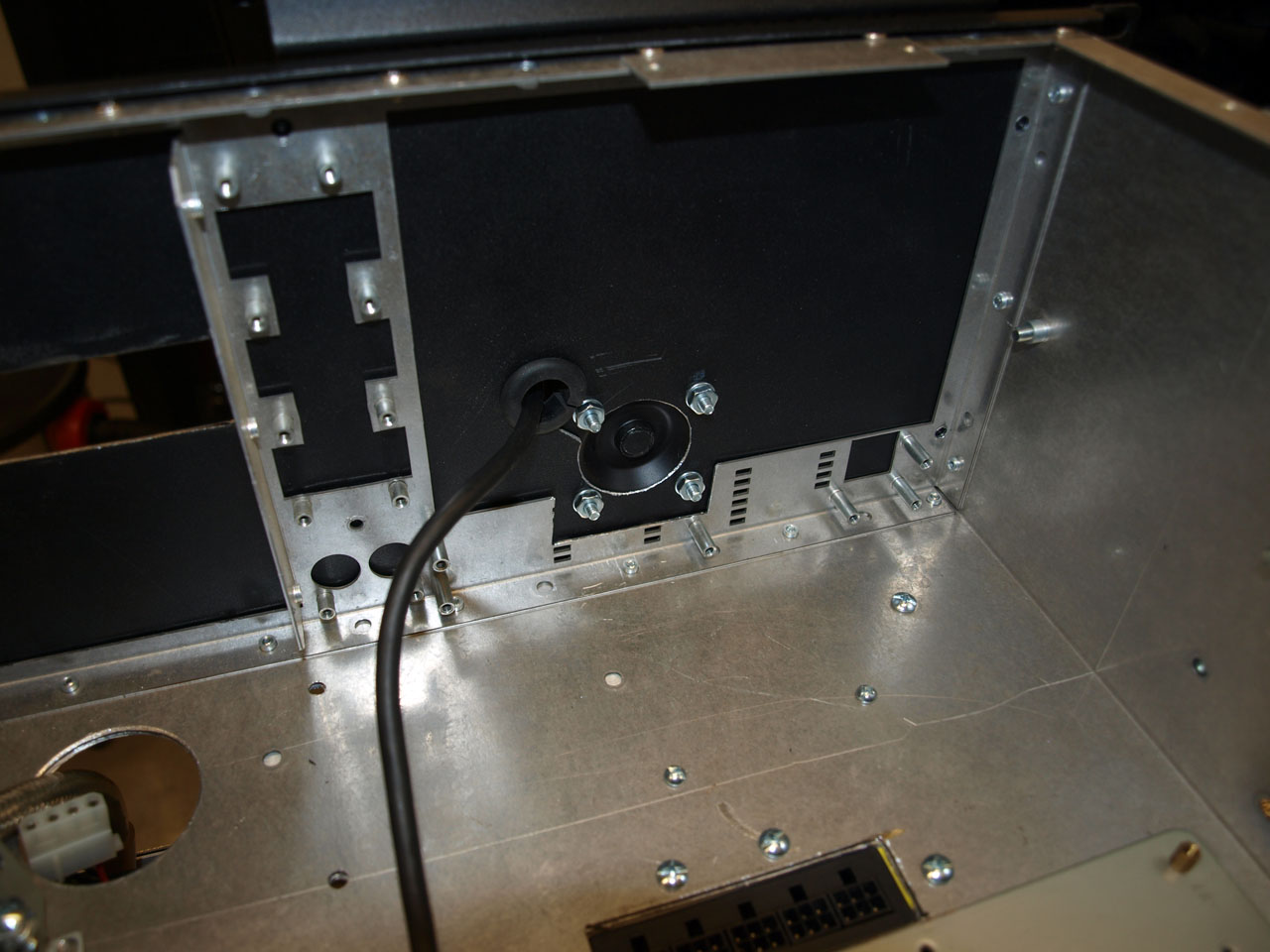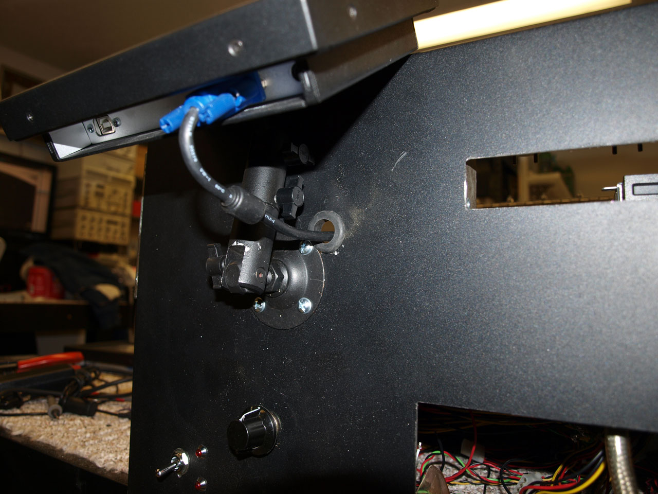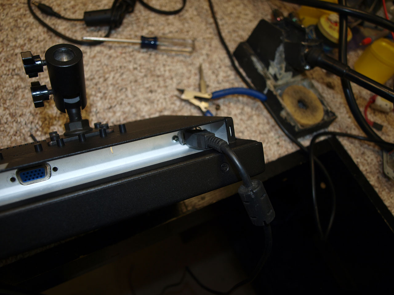 Now the power cable fed through. This monitor uses a simple +12v, easily powered by the internal IPU. The brick that came with it will not be used.