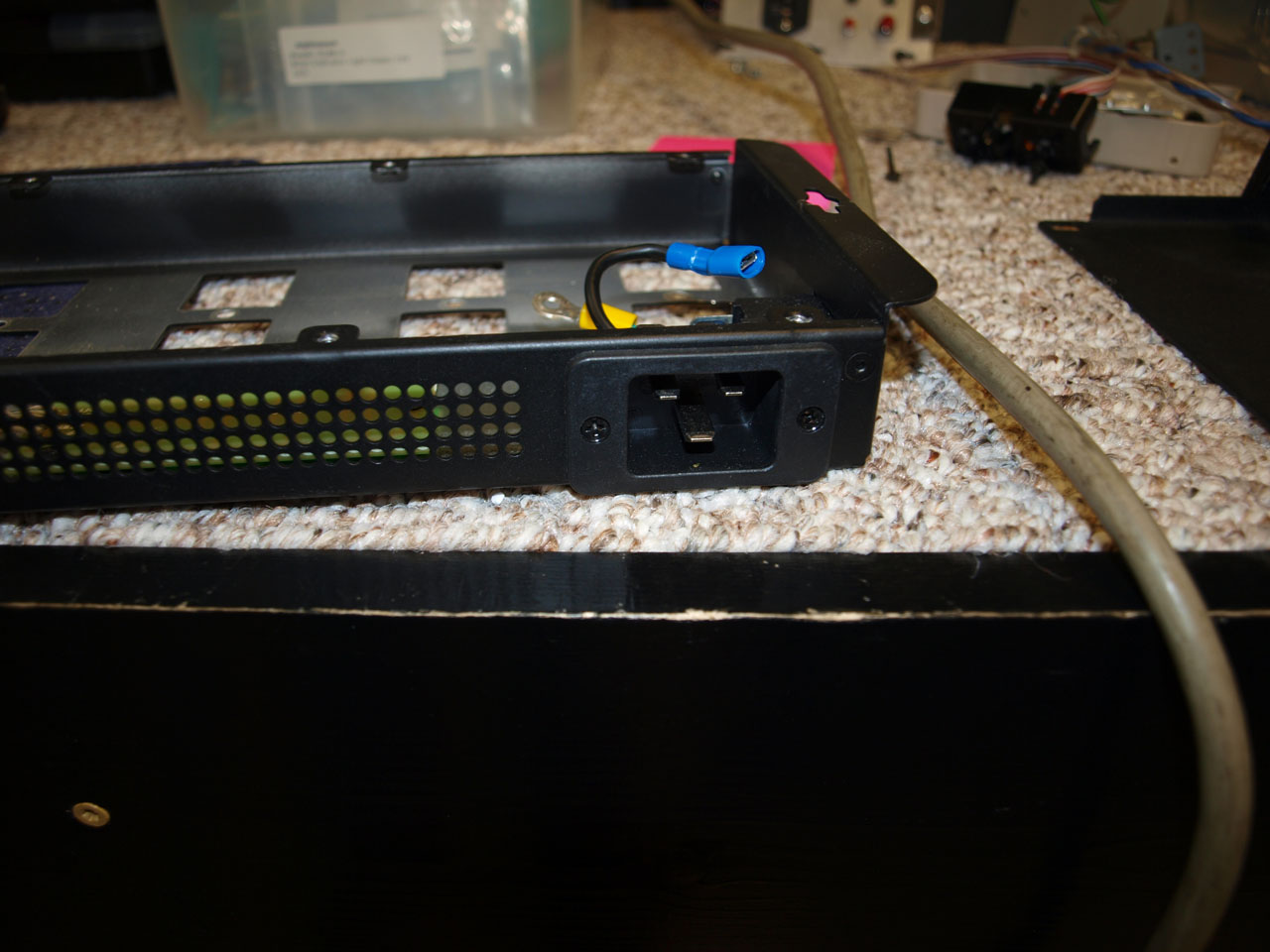 Now for a little re-engineering of the fault warning in the redundant PSU. This PSU has a LED interface for operating conditions of the unit; a power-on/OK and a fault/warn status. The Dolby unit did not utilize this function, as the harness for it was just tied up inside the case.... I want to use this function with my top control panel indicator lamps, which are either 5v or 12v....the problem is, the output plug obviously goes through a current limiter in the backplane, which yields an output of ~2.5v, which won't even strike the 5v lamps. I didn't take pics, but I back traced the harness and tested the voltages prior to the current limiting resistor, lo & behold, 5V!! The LED lamps I'm using are internally current limited, I can run the 5v lamps between 4v and 9v, the 12v ones are good from 9v to about 15.