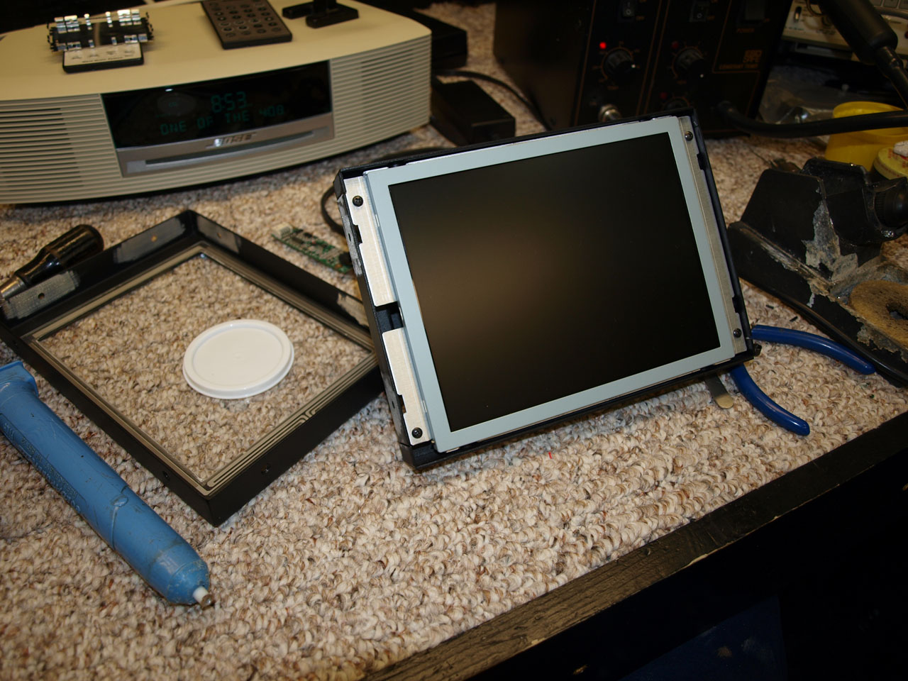 Live test of the display controls. Powered on, no signal; red LED lit.