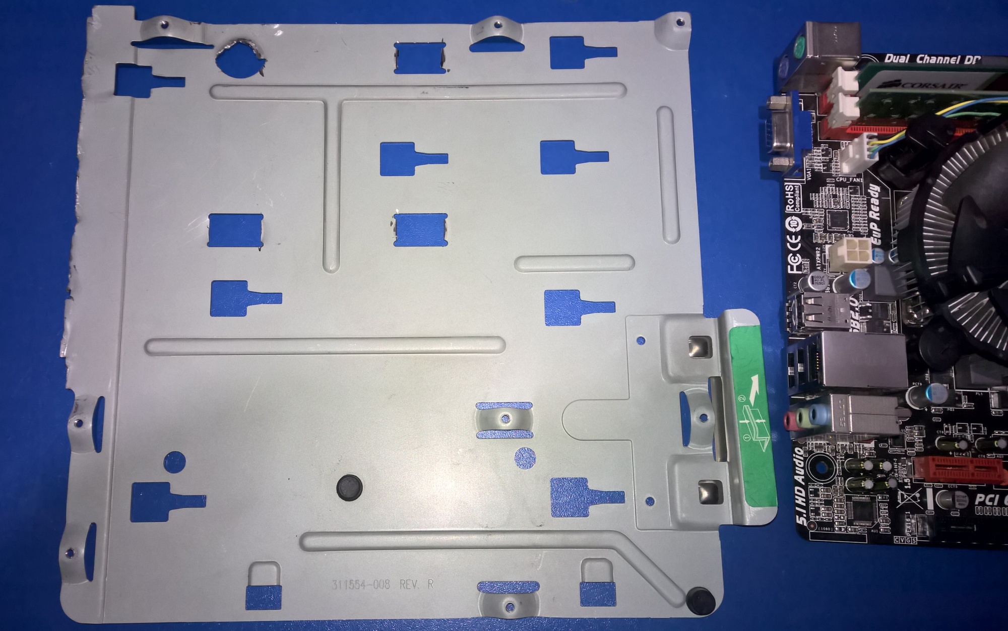 Well, the I/O shield of the original board was built into the mobo tray, and this being 1mm thick steel, required some brute force to modify.