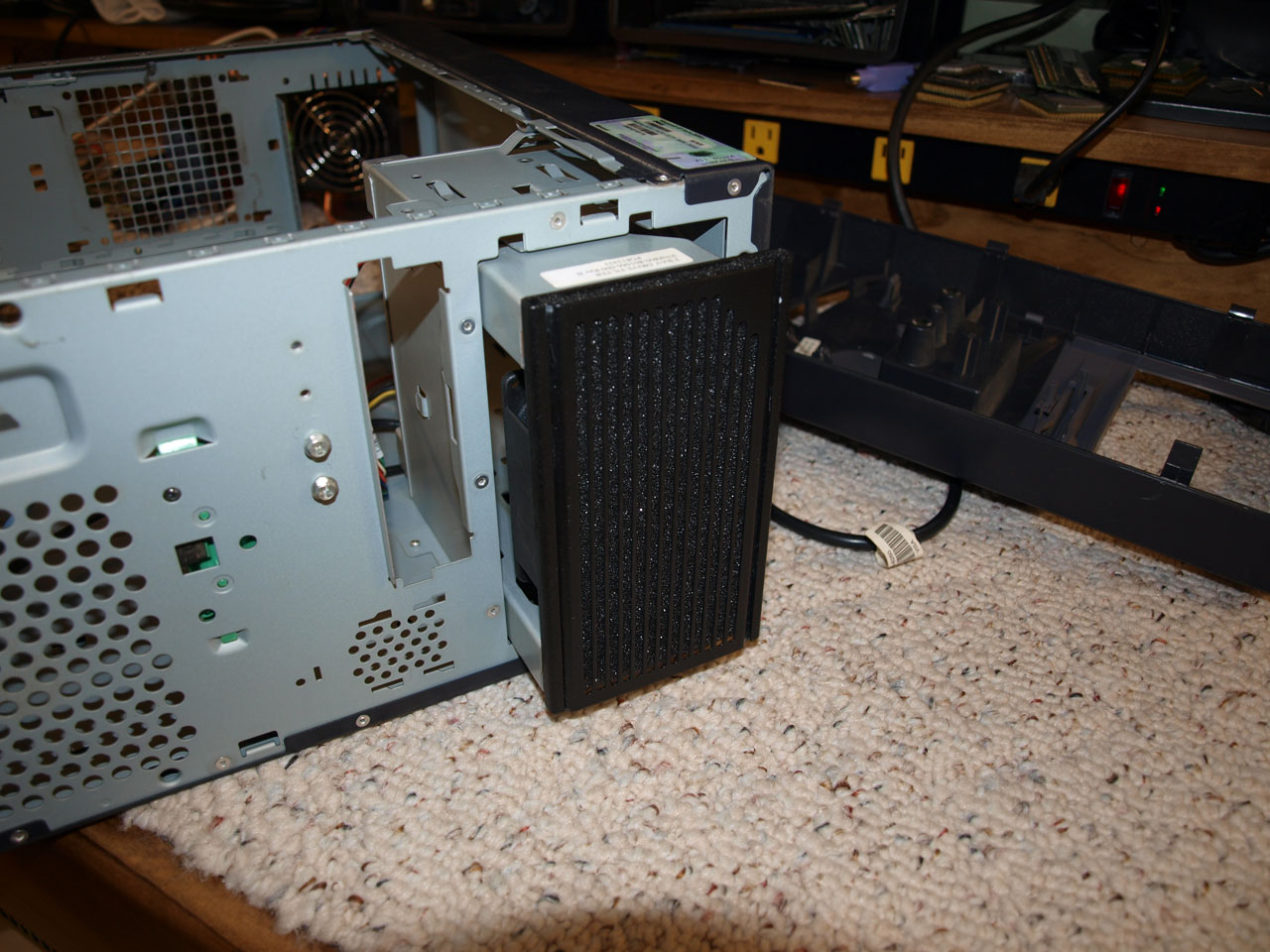 I've kept a constant vigil of all the mATX cases I encountered, hoping I'd run into one that has just a little extra room between the bottom edge of the board and the floor of the case.... I finally got one earlier this week when one of the local shops gave me a pickup load of junk.... It was a Dimension 1100 with a 2.53GHz Celeron in it. The motherboard was bad, the PSU needs recapped, and by modern standards, this thing was truly scrap iron!