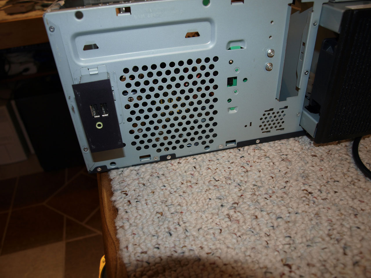 I took the case outside and blasted it with the air hose to get all the bunnies out of it, and then came the art of making the square peg go into the round hole...