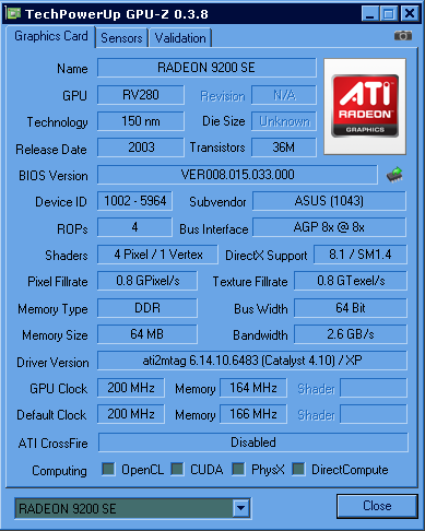 … I know, don’t laugh!) 64 MB AGP video card. Here is how the card looked originally: