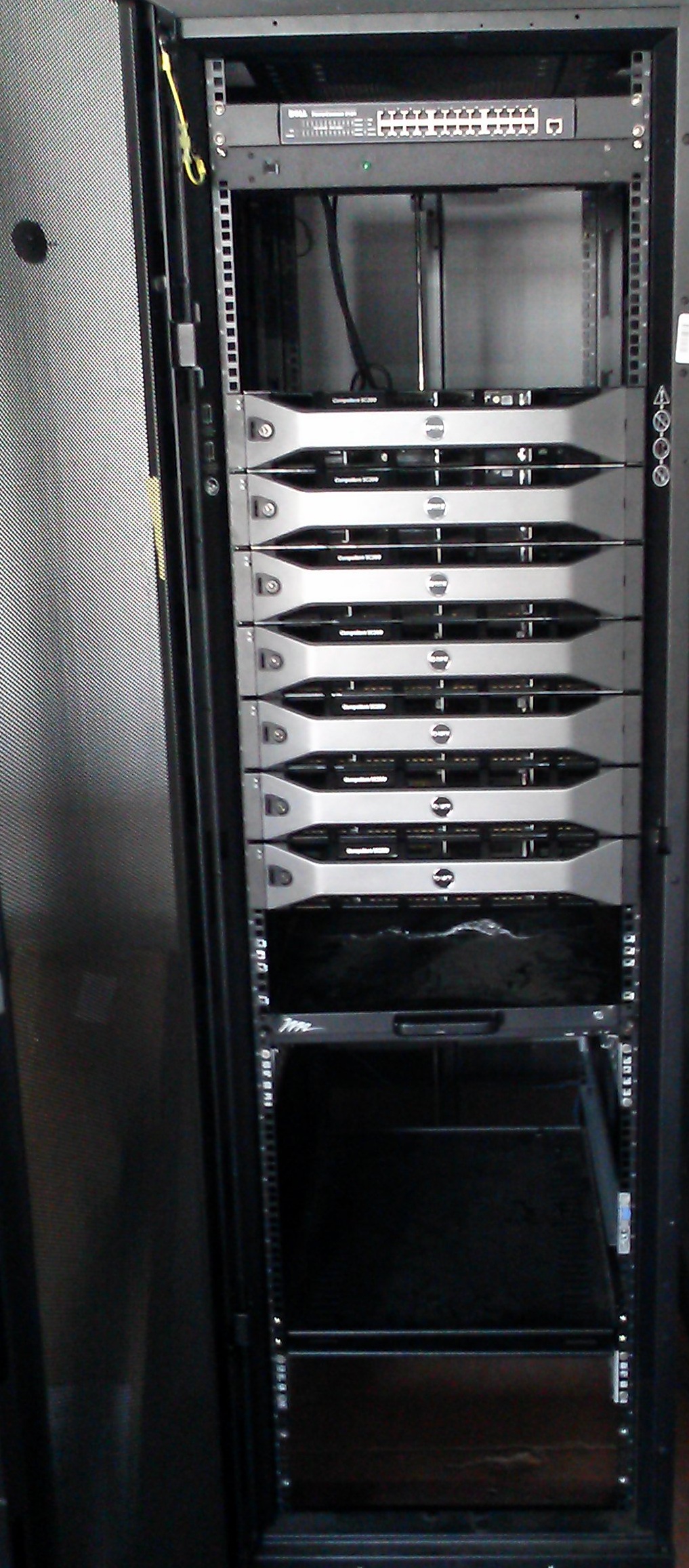 Still to add: two servers (one to wipe disks, the other for the RDBMS), a pair of rack-mountable UPSs and firewall appliance. And, a "smart" PDU.