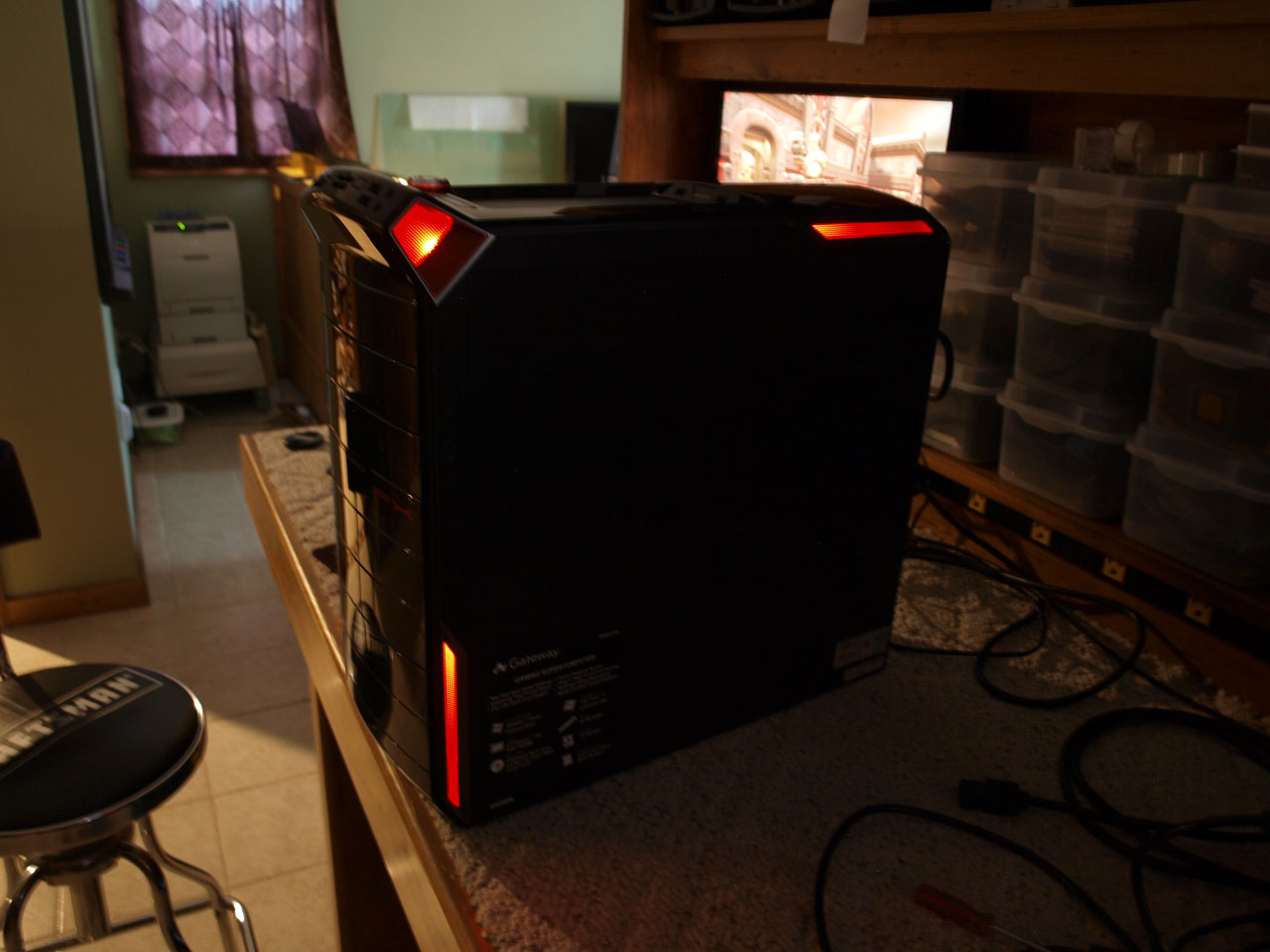 Some mild red LED lighting.... Pretty tastefully done I must say, not overdone. I still lol at 'SuperComputer' being on the case badge from Gateway....but I bet that lighting increases the FPS by atleast 2.77 FPS in any game just because of the cool points!!