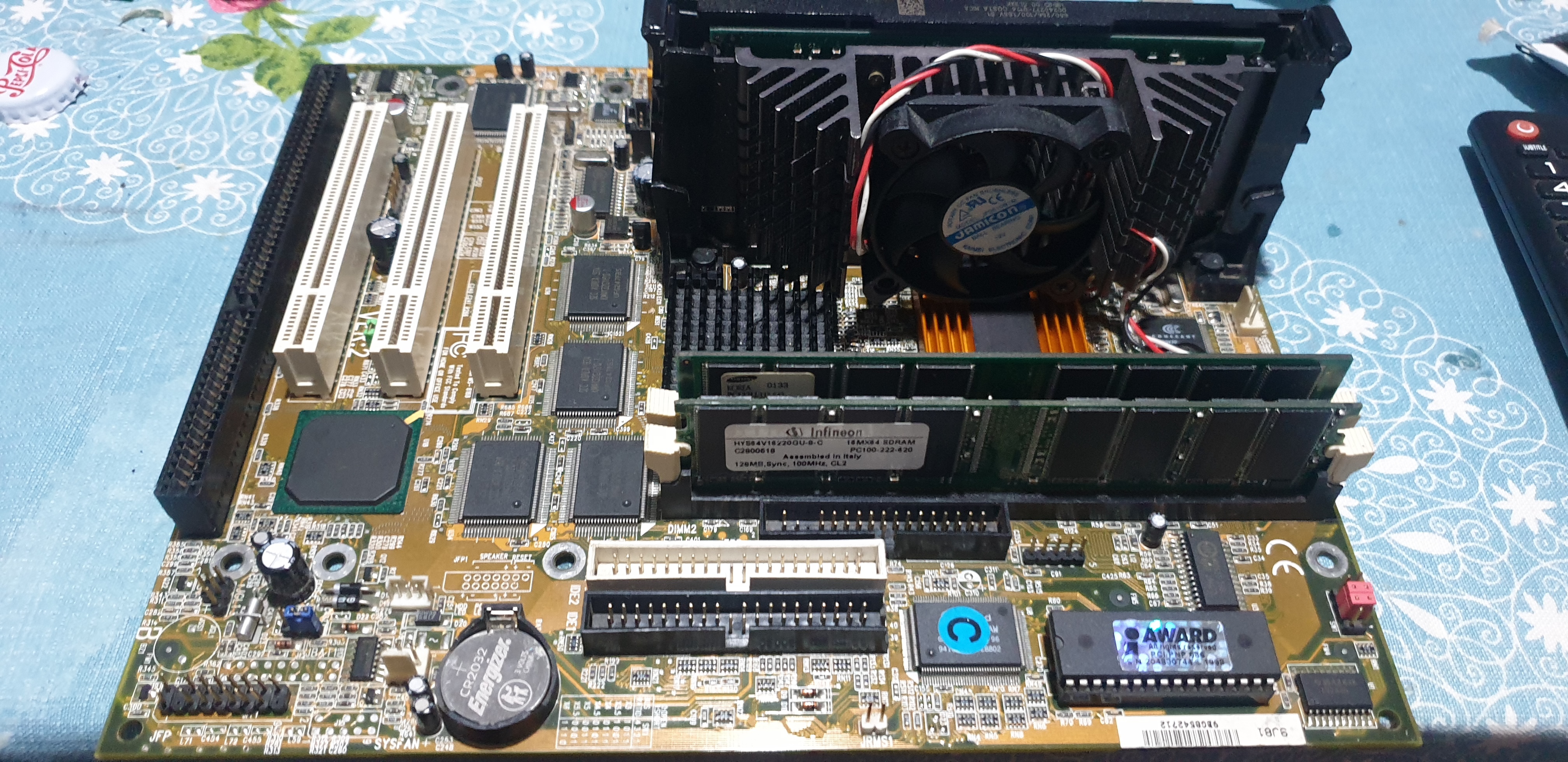 In the meantime, the MSI 6168 w/ the 440ZX chipset showed up. Clearly off the scrappers as the whole bunch of SMD resistors on the 3dfx chip's side were absolutely OBLITERATED