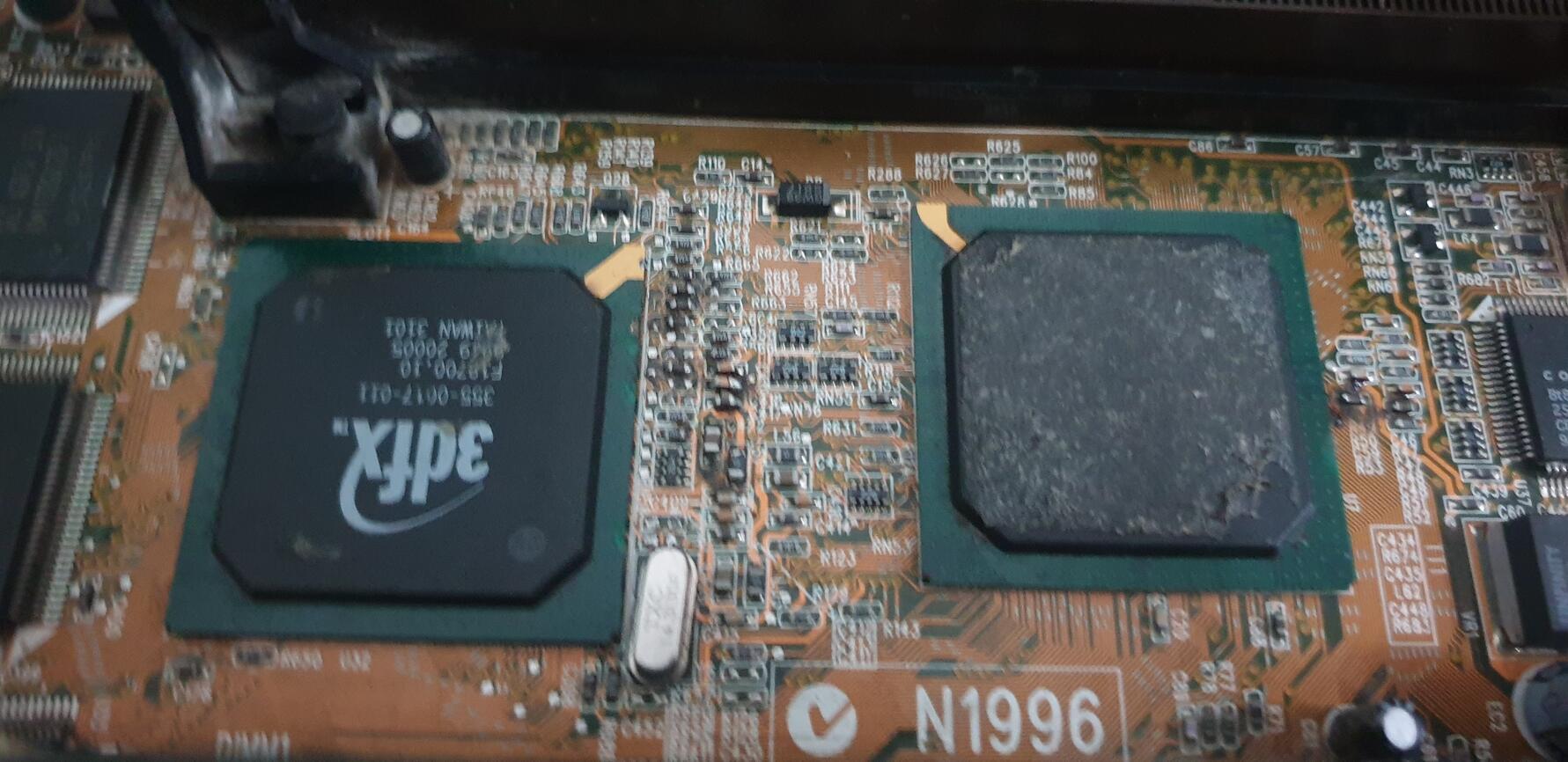 I see some damage on the side of the Voodoo 3 chip, so it's good that it still works.Comment
