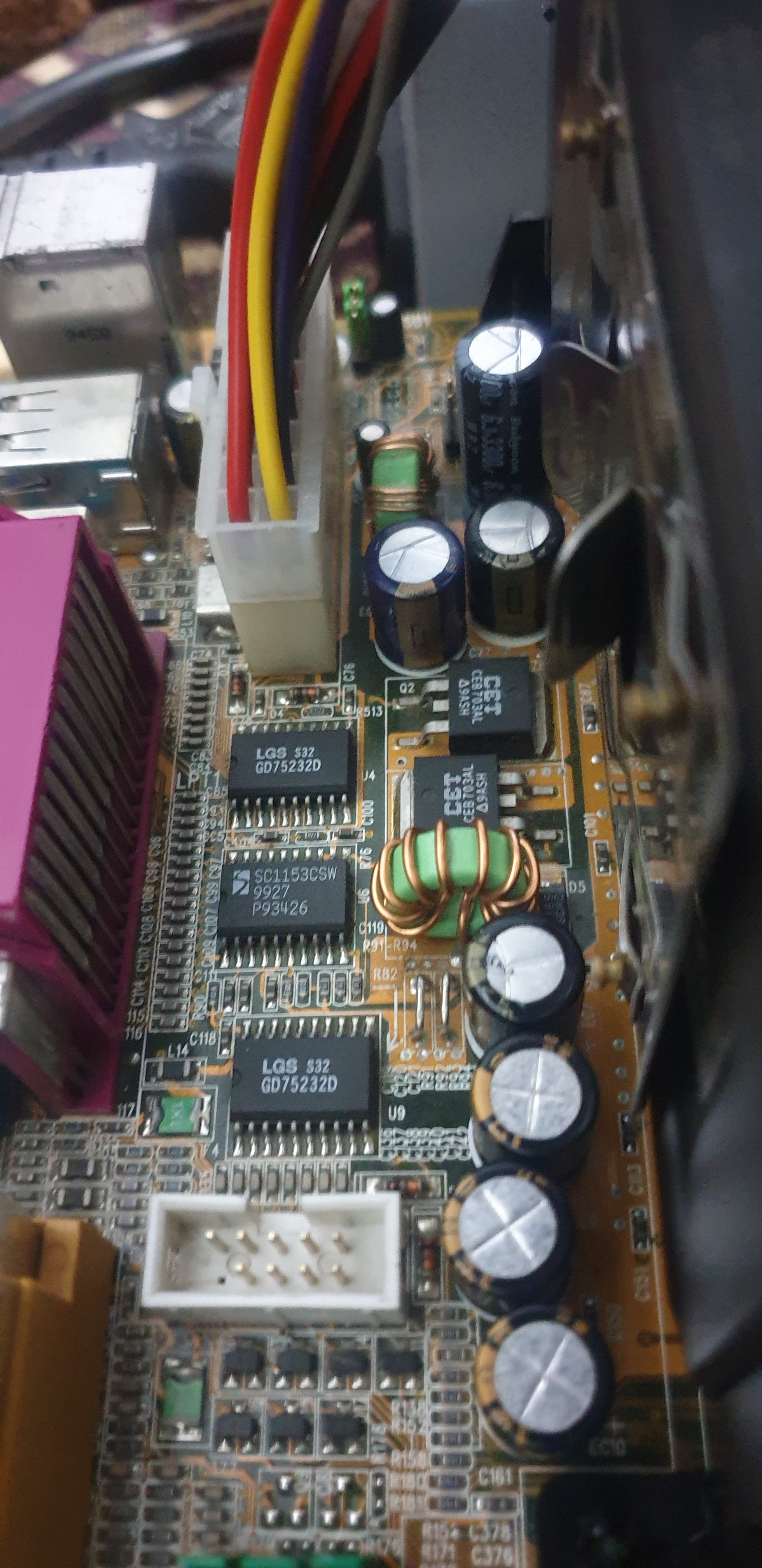 The MS-Industrial (Sun Pro) PSU you see was also recapped prior for a MSI 850 Pro5 build (with the AT styled Auxiliary connecto that ultimately fell flat due to the board's AGP being dead