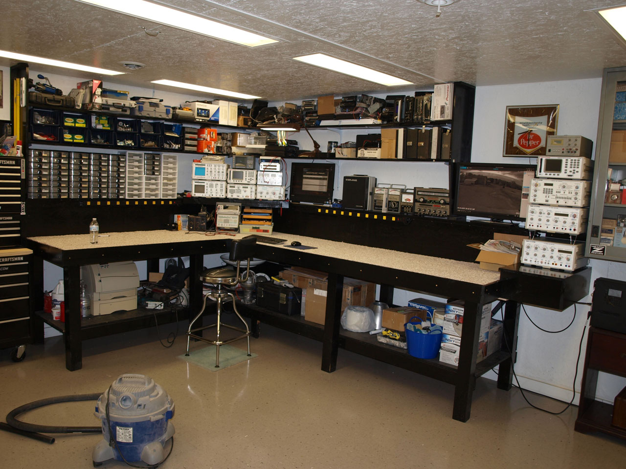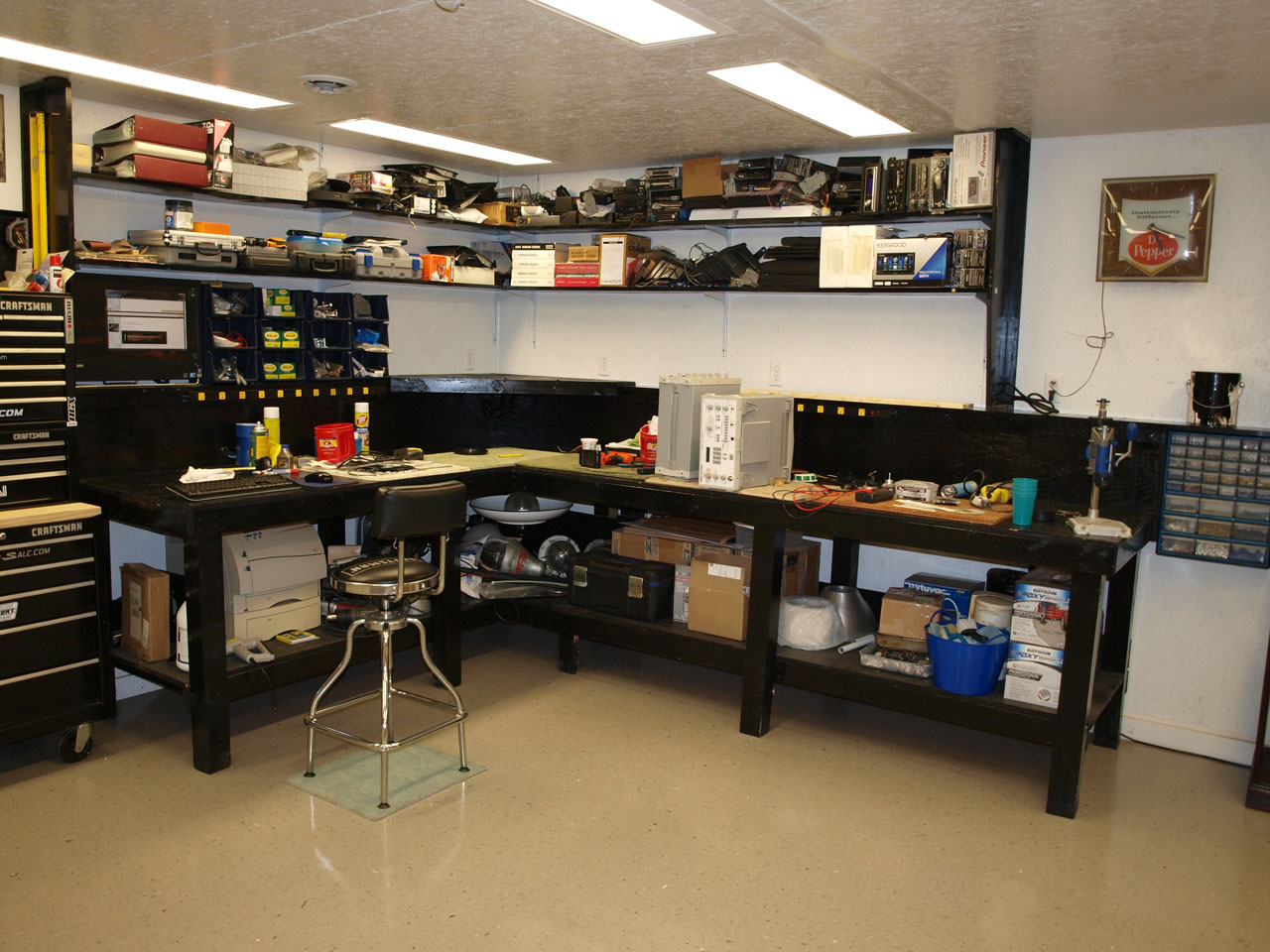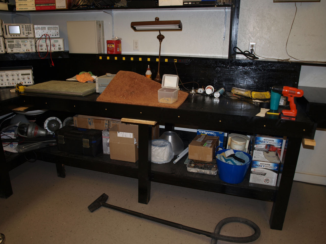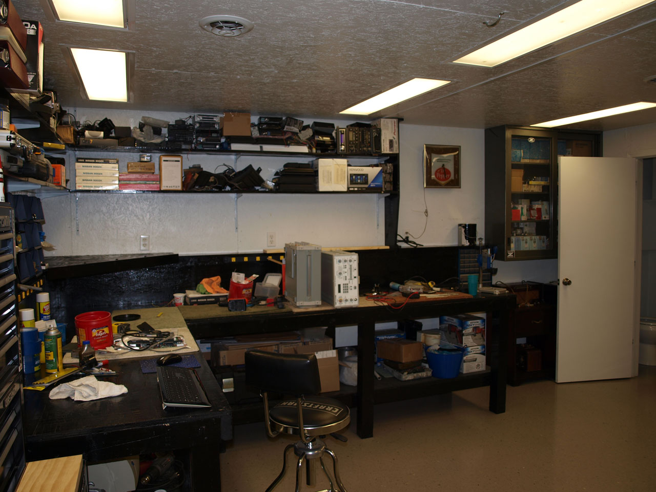 Once the remodel was done, I built a bnech system out in the big garage portion of the building, and this bench pretty much got used for a catch-all....and it dawned on me....what better could one want! It's located deep in the bowels of the building, few have seen. It's heated & cooled. Awesome lighting.....WTF, so yea, I cleaned all the junk off and the backboard shelf.