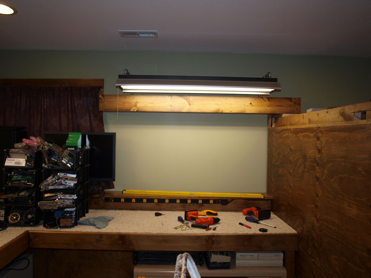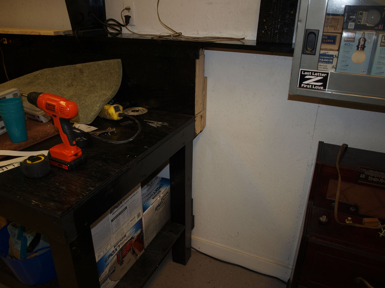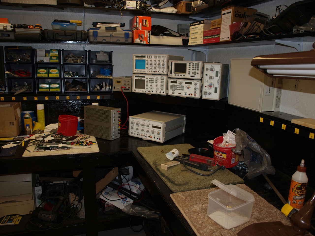Once the remodel was done, I built a bnech system out in the big garage portion of the building, and this bench pretty much got used for a catch-all....and it dawned on me....what better could one want! It's located deep in the bowels of the building, few have seen. It's heated & cooled. Awesome lighting.....WTF, so yea, I cleaned all the junk off and the backboard shelf.