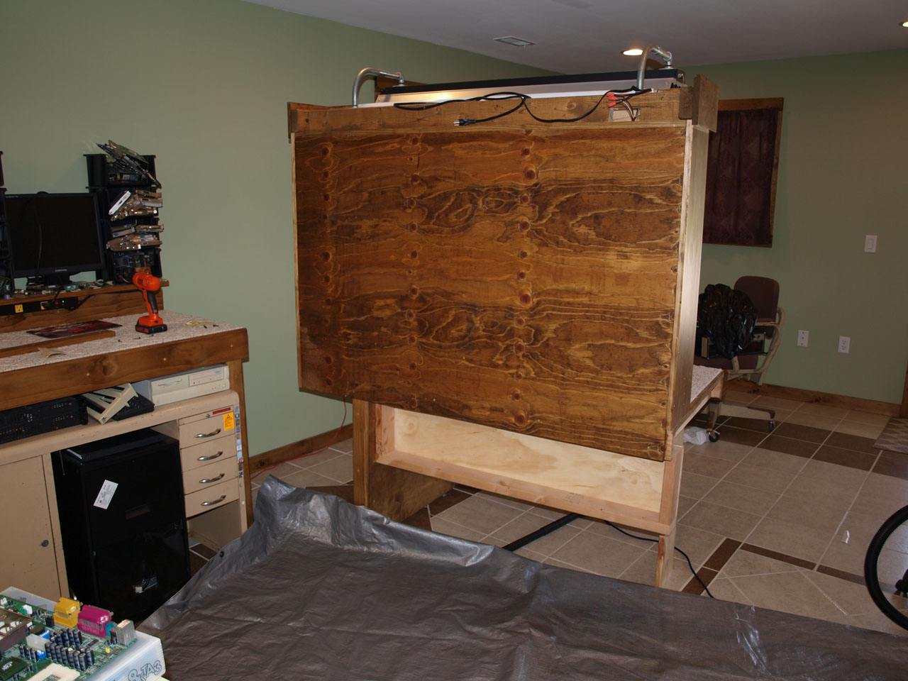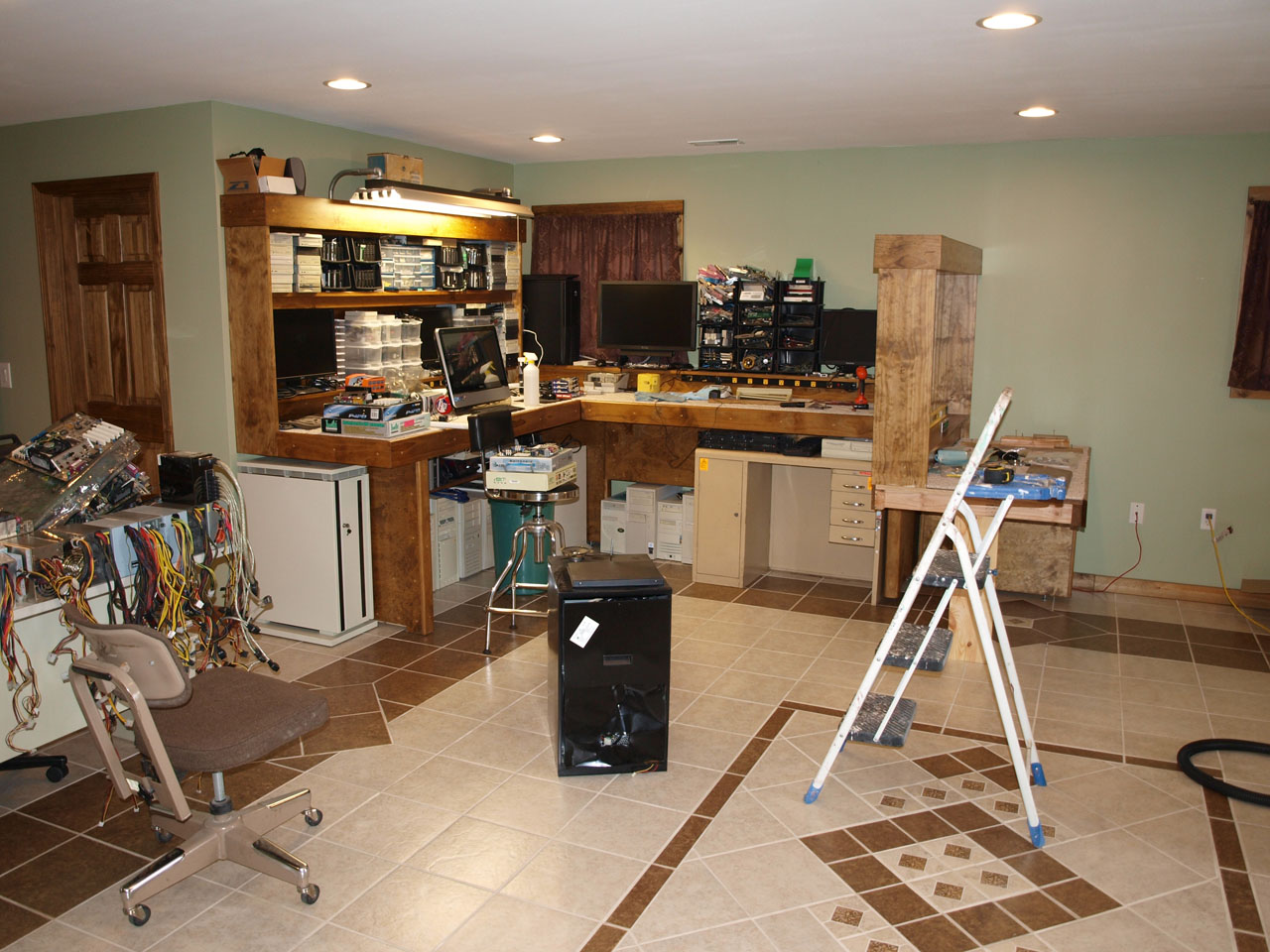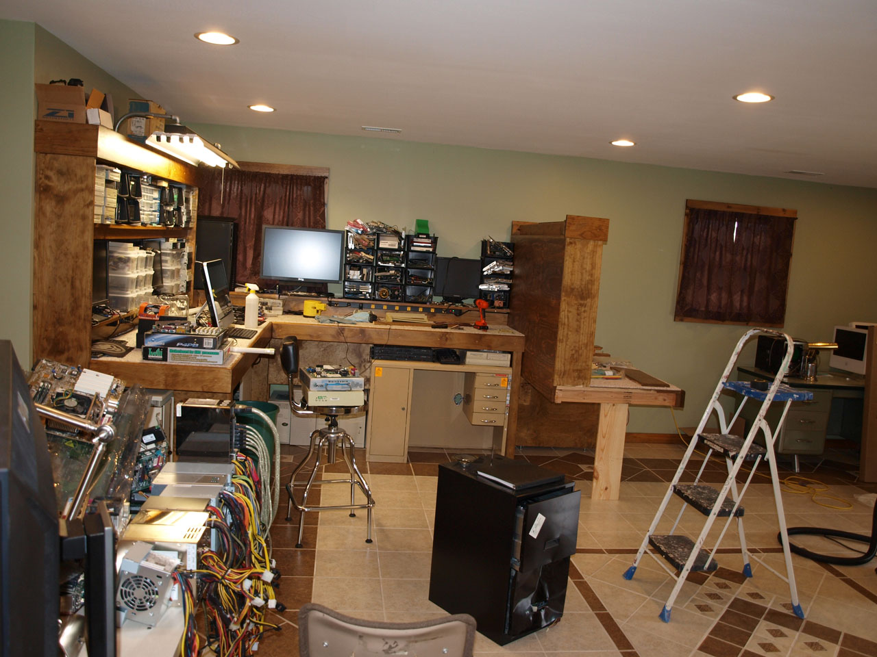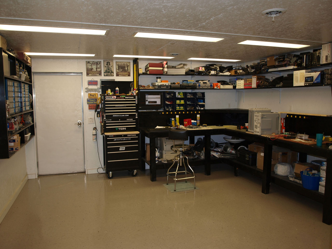 Once the remodel was done, I built a bnech system out in the big garage portion of the building, and this bench pretty much got used for a catch-all....and it dawned on me....what better could one want! It's located deep in the bowels of the building, few have seen. It's heated & cooled. Awesome lighting.....WTF, so yea, I cleaned all the junk off and the backboard shelf.