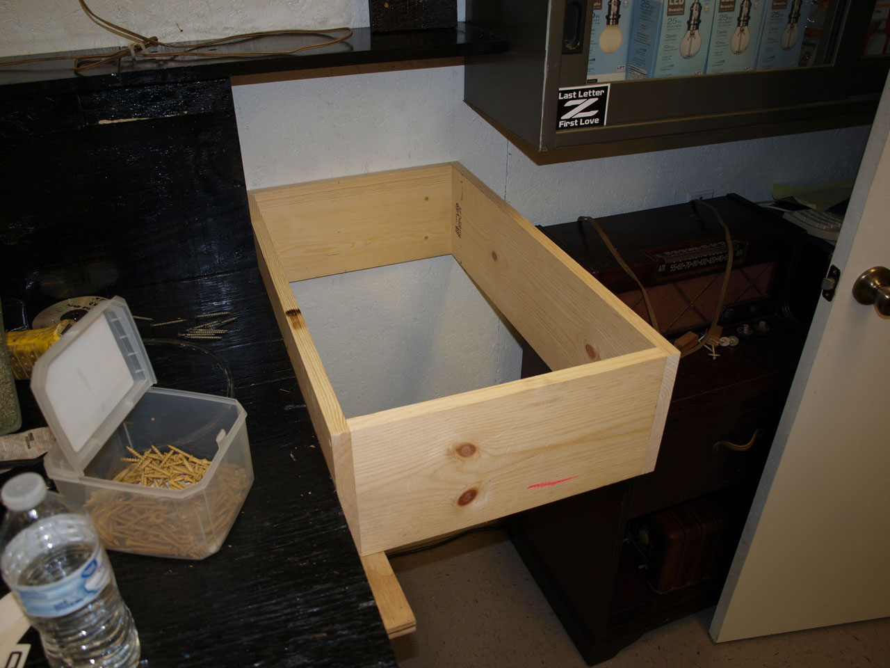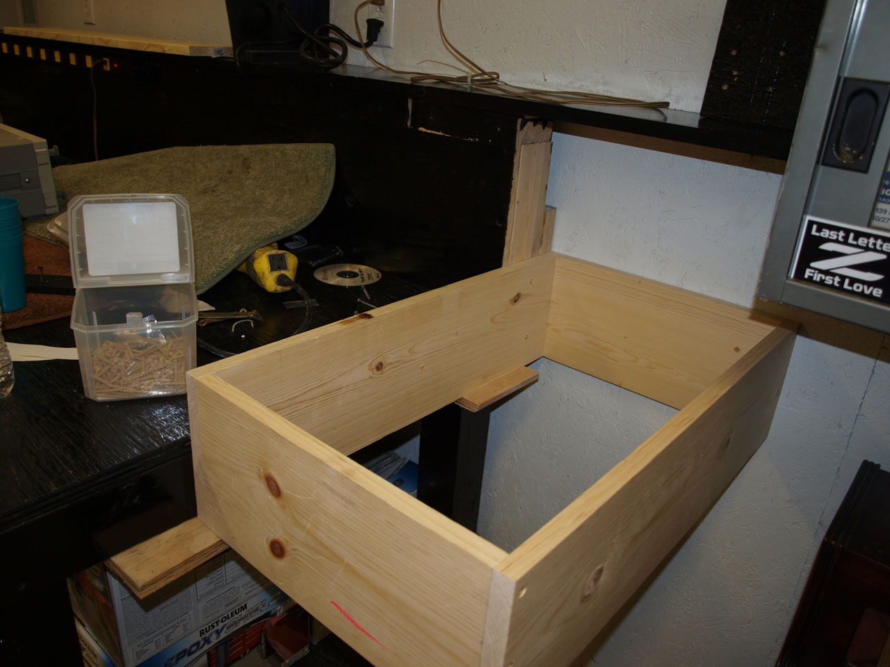 Now for the front & side edge rails that will create a track 1/4" deep on the bench surface....for carpet to sit in and not move around. I use a commercial anti-static berber carpet. I haven't zapped one yet.
