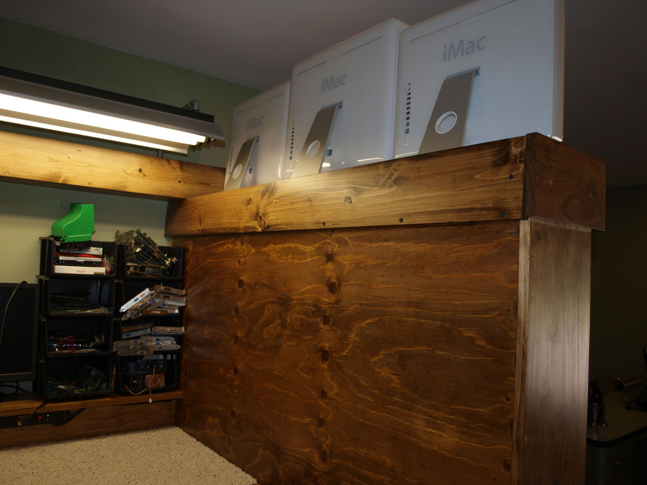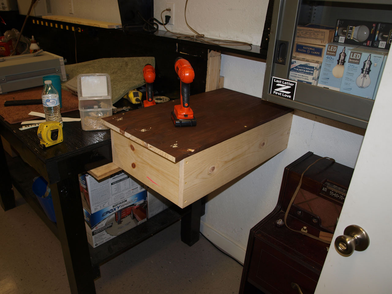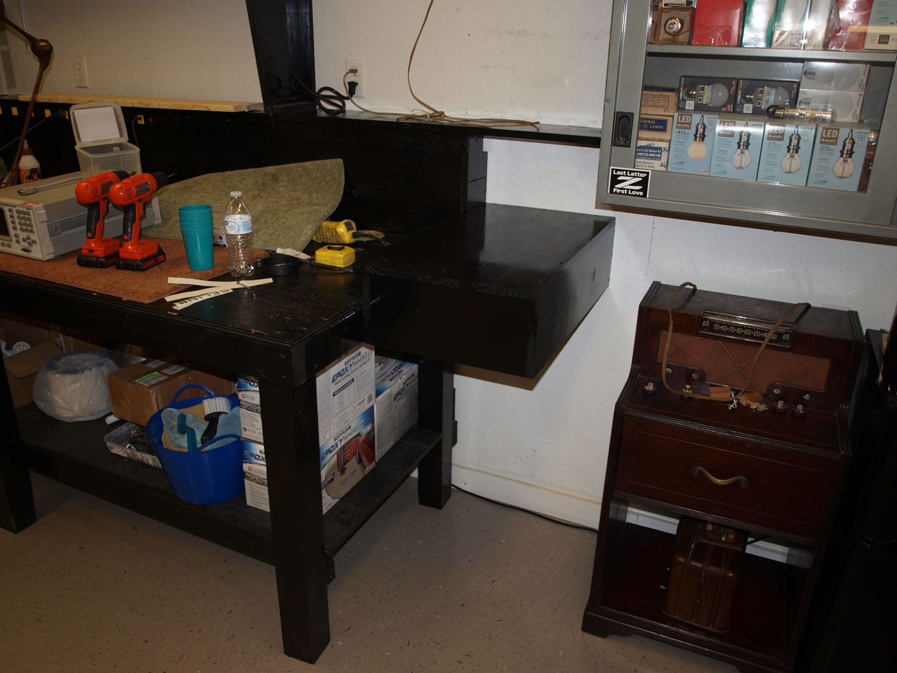 Installed. Yea, I know it looks a little out of place, but there's more to come that will be under and to the right of it (under the glass door cabinet). This just had to be done to complete the workbench itself