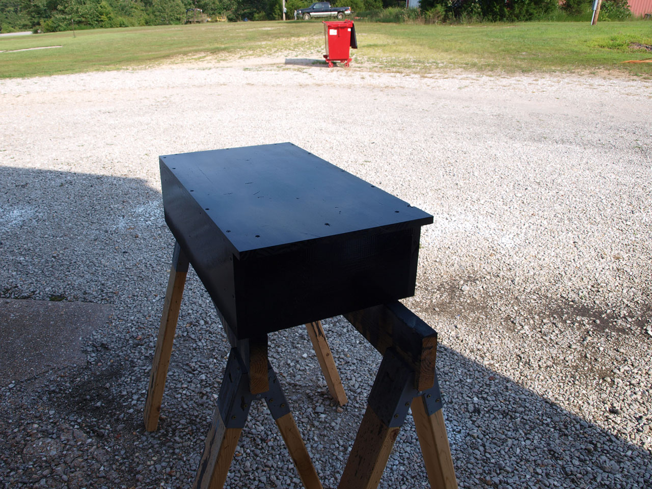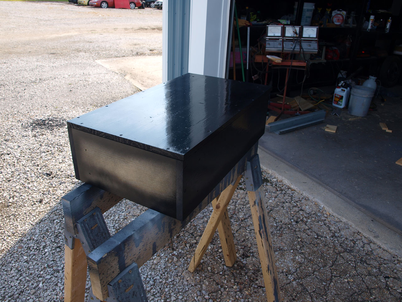 Top coat applied and mountings drilled. This is being held in place by 3x 3/8" carriage bolts....