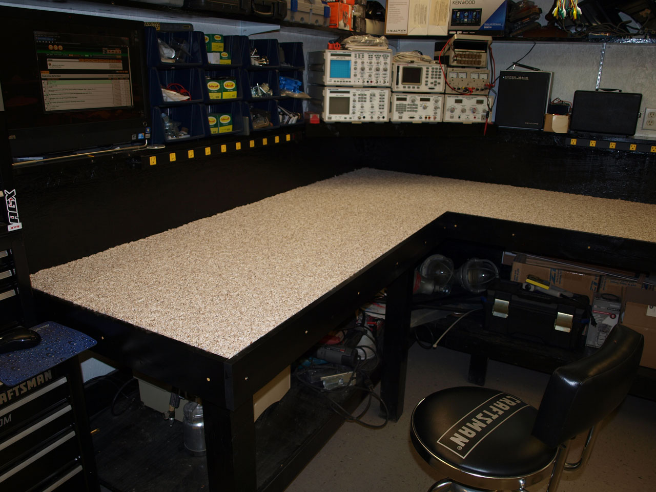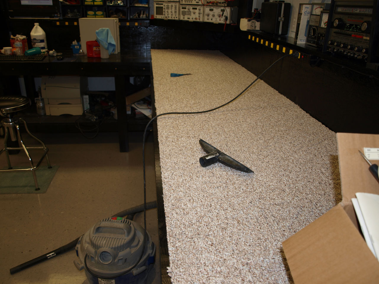 Today wrapped up the modification to this bench with a trip to the local carpet store to see what they had.....nice remnant roll of commercial anti-static berber carpeting!!
