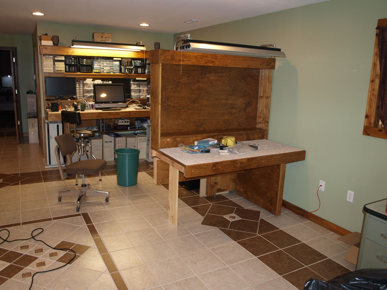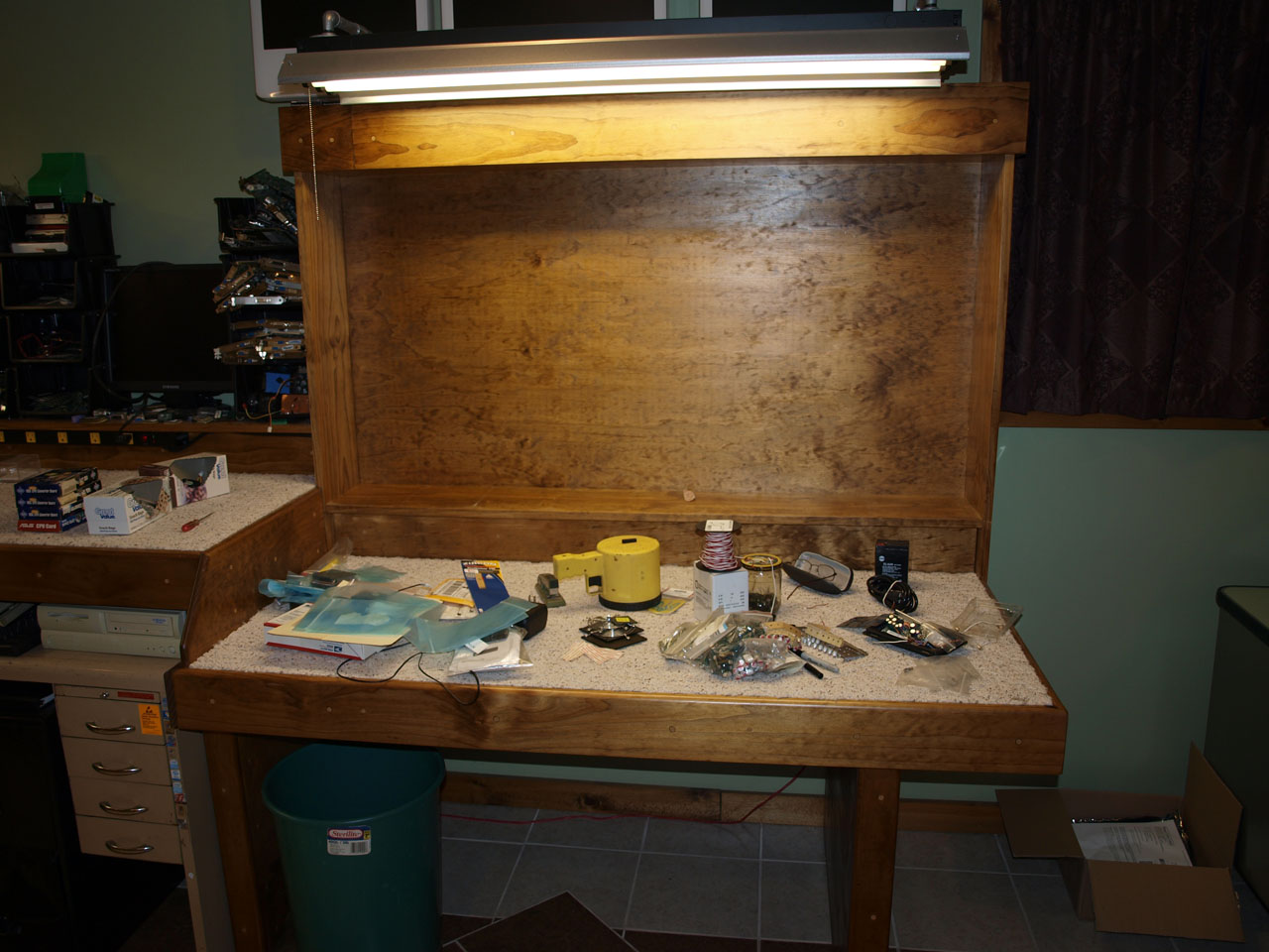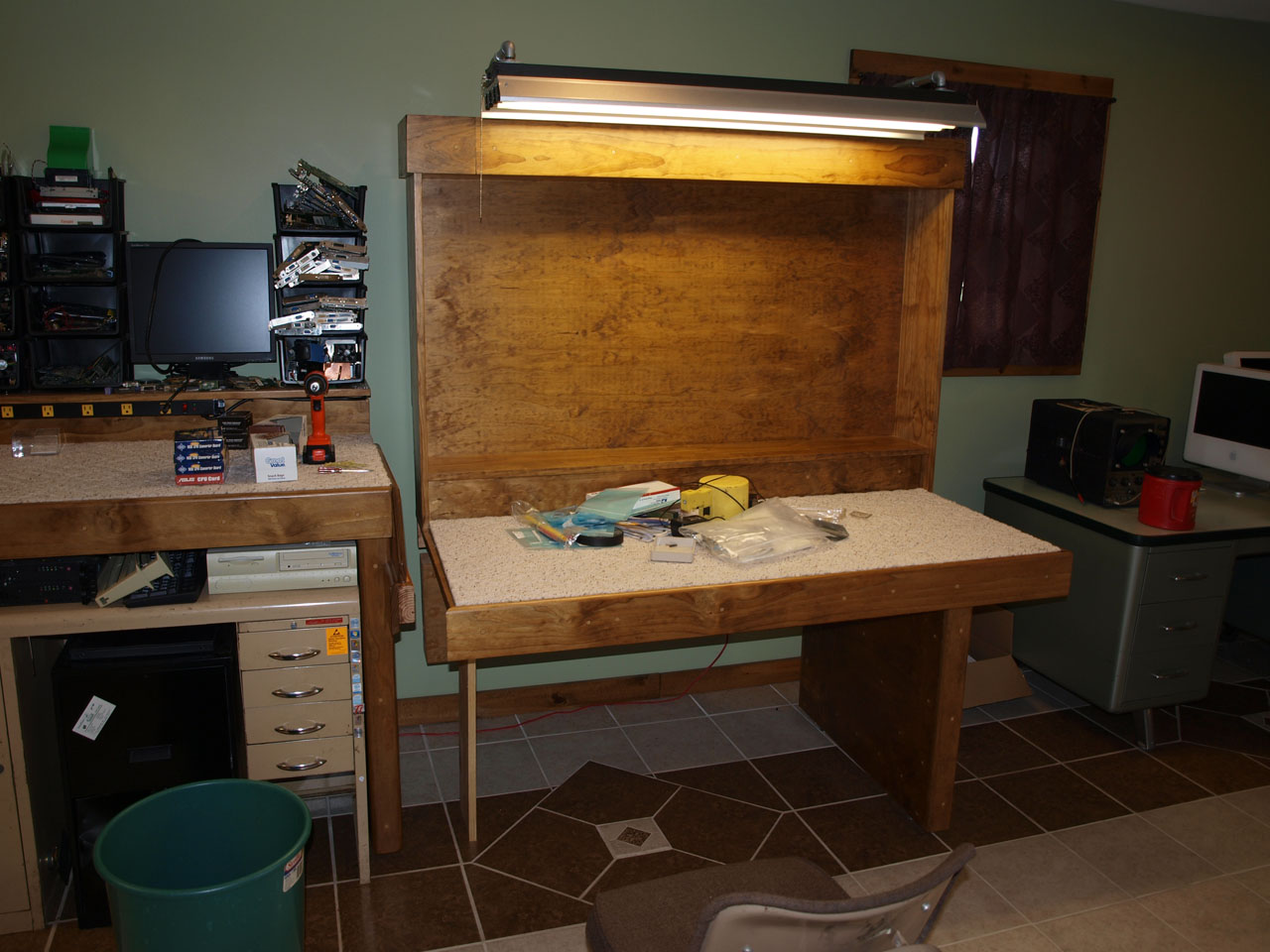 More fun continued.... The service bench in my office now needed a little reconfiguring.....since no more component level stuff (messy stuff) will be done in here....this bench is strictly for clean stuff.