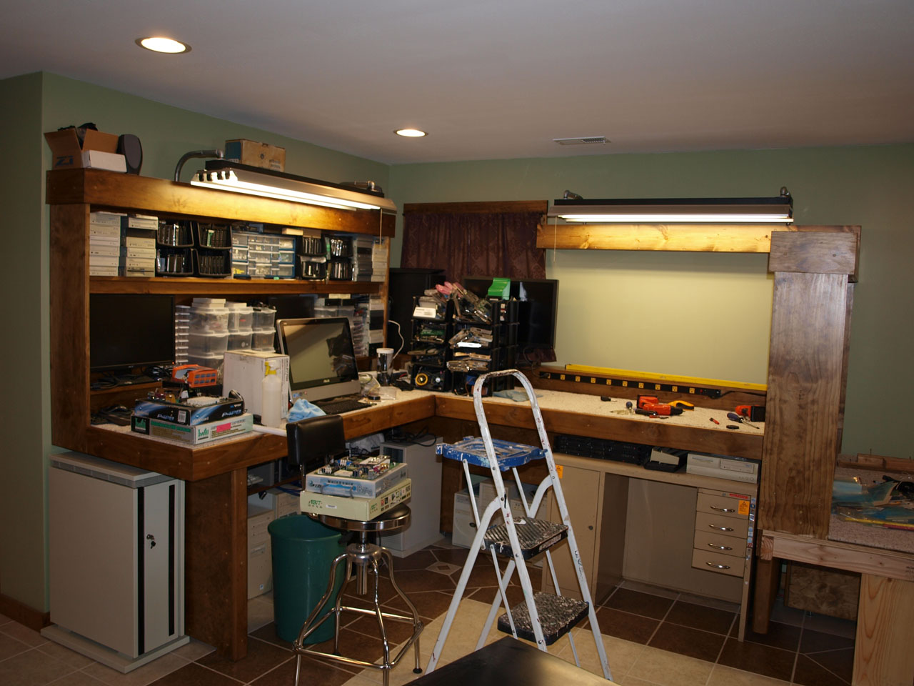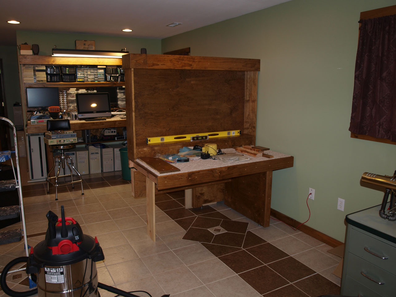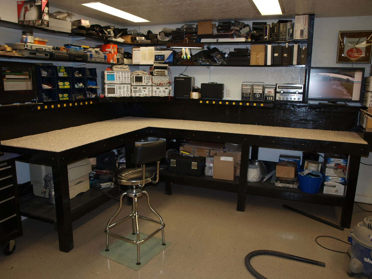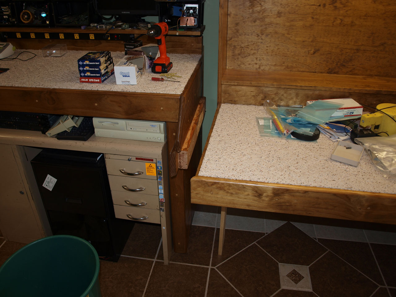More fun continued.... The service bench in my office now needed a little reconfiguring.....since no more component level stuff (messy stuff) will be done in here....this bench is strictly for clean stuff.