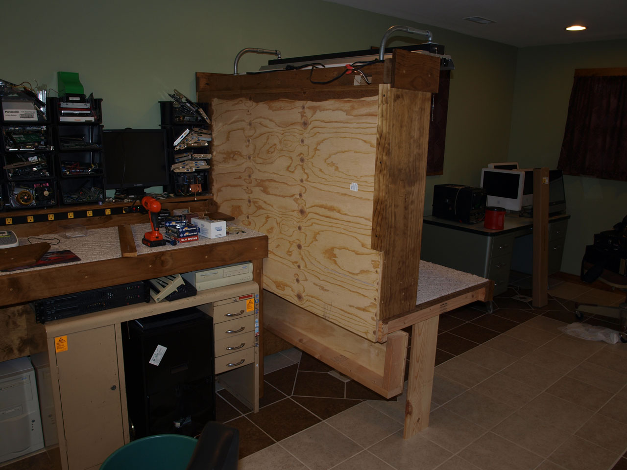 Ok, made some headway this weekend....starting with extending a stack rack on the right side of the bench, for more equipment or whatever....its raised about 4" above the bench work surface.