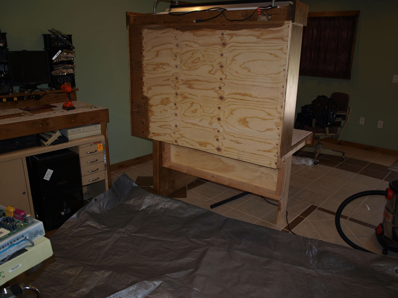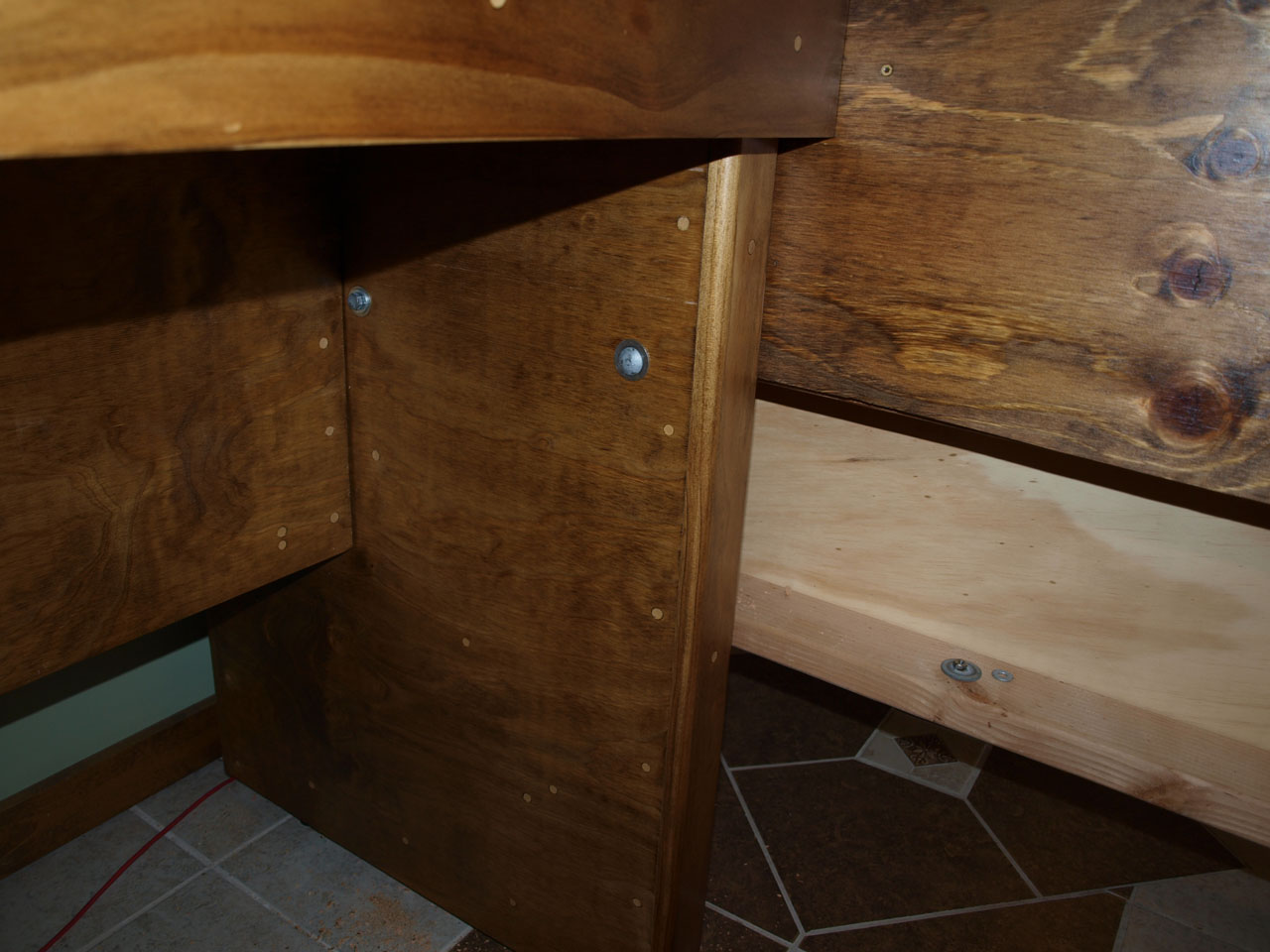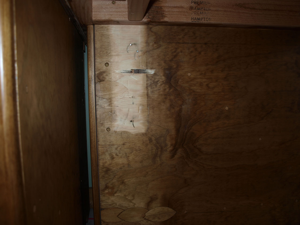 Back unfinished....didn't think I'd ever had a need for it to be finished.....times change. Standing on a temporary leg on one side.