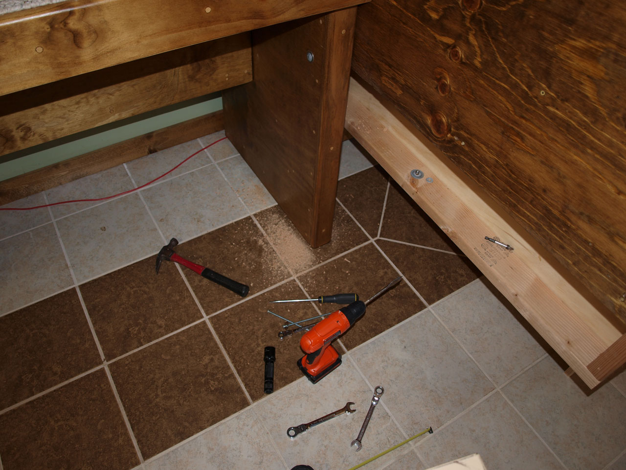 Nothing a piece of scrap board wouldn't cure!! I didn't bother to make that outside corner perfect (didn't 45* it).....it really won't be seen by anyone but me. Making it perfect would have meant removing the entire head piece from the bench.....wasn't worth the effort.