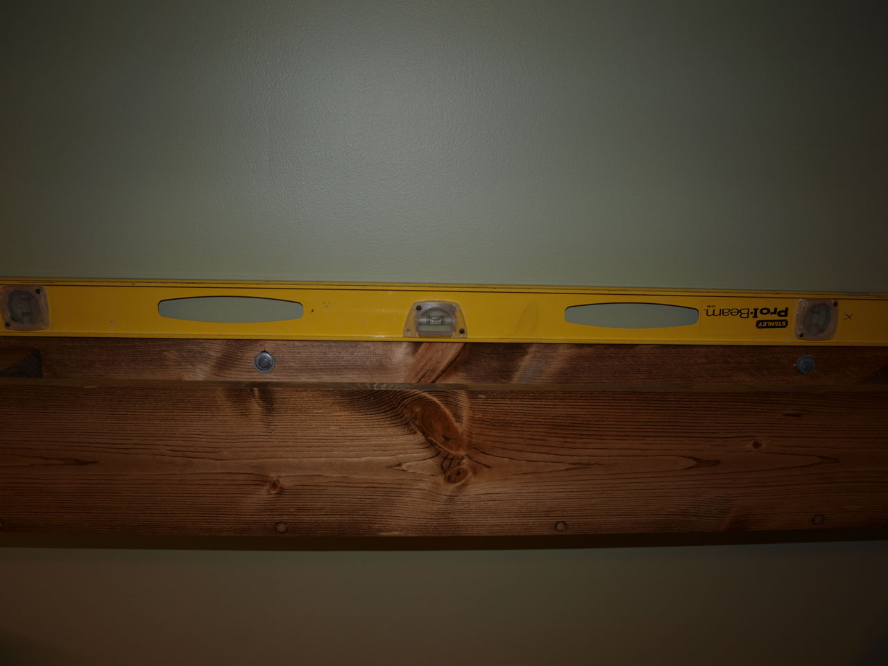 3x 5" 3/16 lag bolts into the studs later, adjusted, and level!