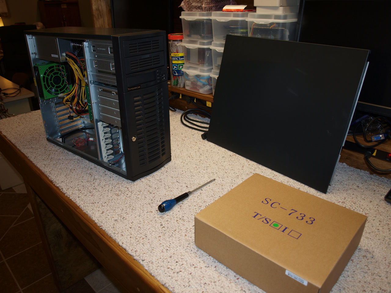 Cheap ebay score. Said used, but never been mounted up. Came in original box. Came from a recycler, my guess it that it was some kind of return or "B" stock (one side has a couple light scratches on it). The power supply alone was worth what I gave for the whole thing. Me is happy!