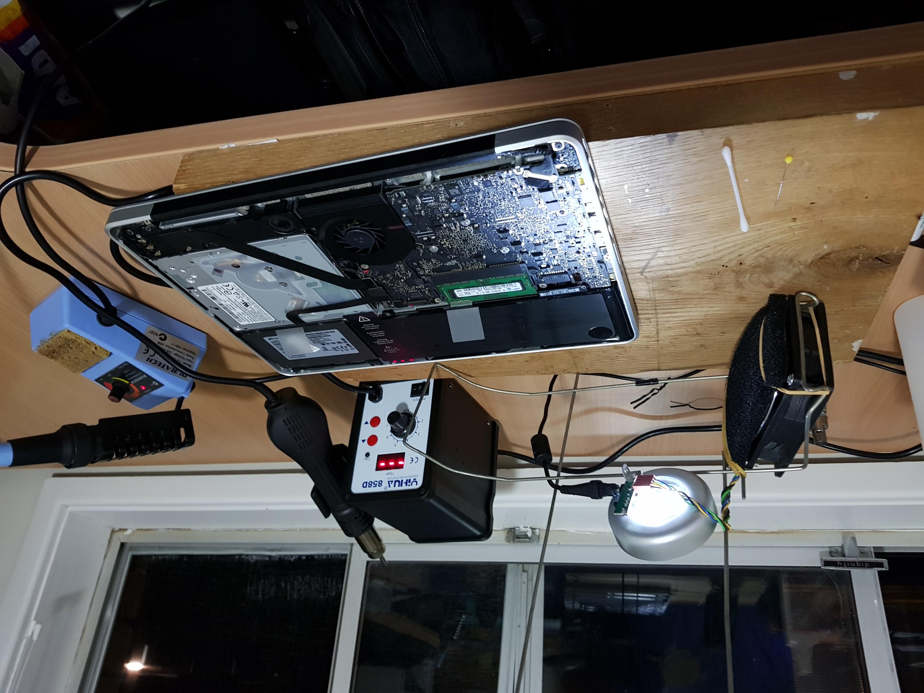 Road side garbage pickup find of the year for me MacBook Pro 13" 2011. It was in the rain but the angle it was on it didn't get any water in it thankfully, it runs, only thing was the optical drive didn't read discs (replaced with a spare I had) and both USB ports didn't recognize any device, I recently fixed it with help from badcaps, both USB data line filters were faulty (fixed from a donor board) now she runs great with a 250GB SSD split half n' half with OSX High Sierra and Windows 8.1