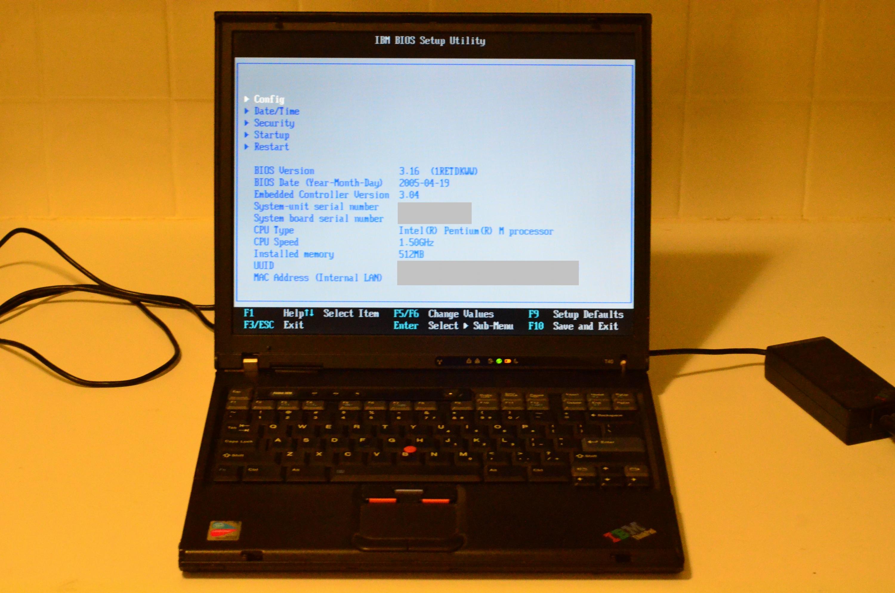 In case you're wondering what on earth I'd do with such an ancient laptop, IBM actually released Windows 9x drivers for these so with a 1.5 Ghz. Pentium M, 512 MB ram, and a mobility-Radeon 7500 it makes a nice Win 9x system and will even run most games from that era well.