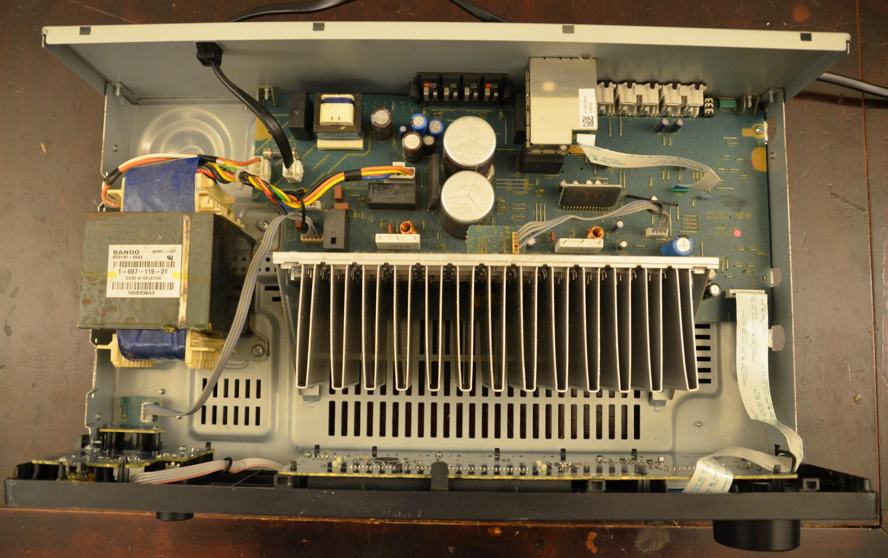 Man are modern low to mid end receivers underwhelming, at least this one has descrete transistors and some of the caps are decent (some Chemi-Cons but also some Lelon), Sony claims 100W per channel into 8 ohms, but I wouldn't bet on it actually doing more than 50W per channel (at least sustained). It is almost hard to believe they actually charged $150 for these things when they were new. The only weight this thing has is the transformer if you remove that it feels like an empty tin box, and the metal the case is made from is so thin you can easily bend it with your fingers (and not allot of pressure).
