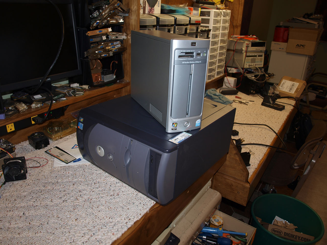 I was given a HP slimline s7620n about 2 years ago by a local shop. It was full of dead roaches, case scratched to hell, and from the house of a heavy smoker.....it sat in the garage since I got it, I never messed with it...and just kinda forgot about it. I came across it yesterday and figured I'd open it up and take the memory, CPU and HDD out of it and trash the rest.....well the 'fixer' in me said lets see what works and what doesnt. I cracked the ACBEL PSU open, sure enough, full of bad l-tec caps.... I hotwashed the motherboard & PSU only at that point, so if it can't be fixed, it'll go in the trash and no more time wasted. I recapped the PSU, that brought the PS and motherboard back to life.... It has a 1.8GHz 533fsb core solo CPU in it and 2gb ram. It had a 250gb HDD in it. The RAM was maxed out, I tried up'ing it to 4gb (even after a BIOS update), and it wouldn't run....atleast with the modules I tried. I found the max CPU it could run in my junkpile, which was a 2.33 C2D 667FSB....