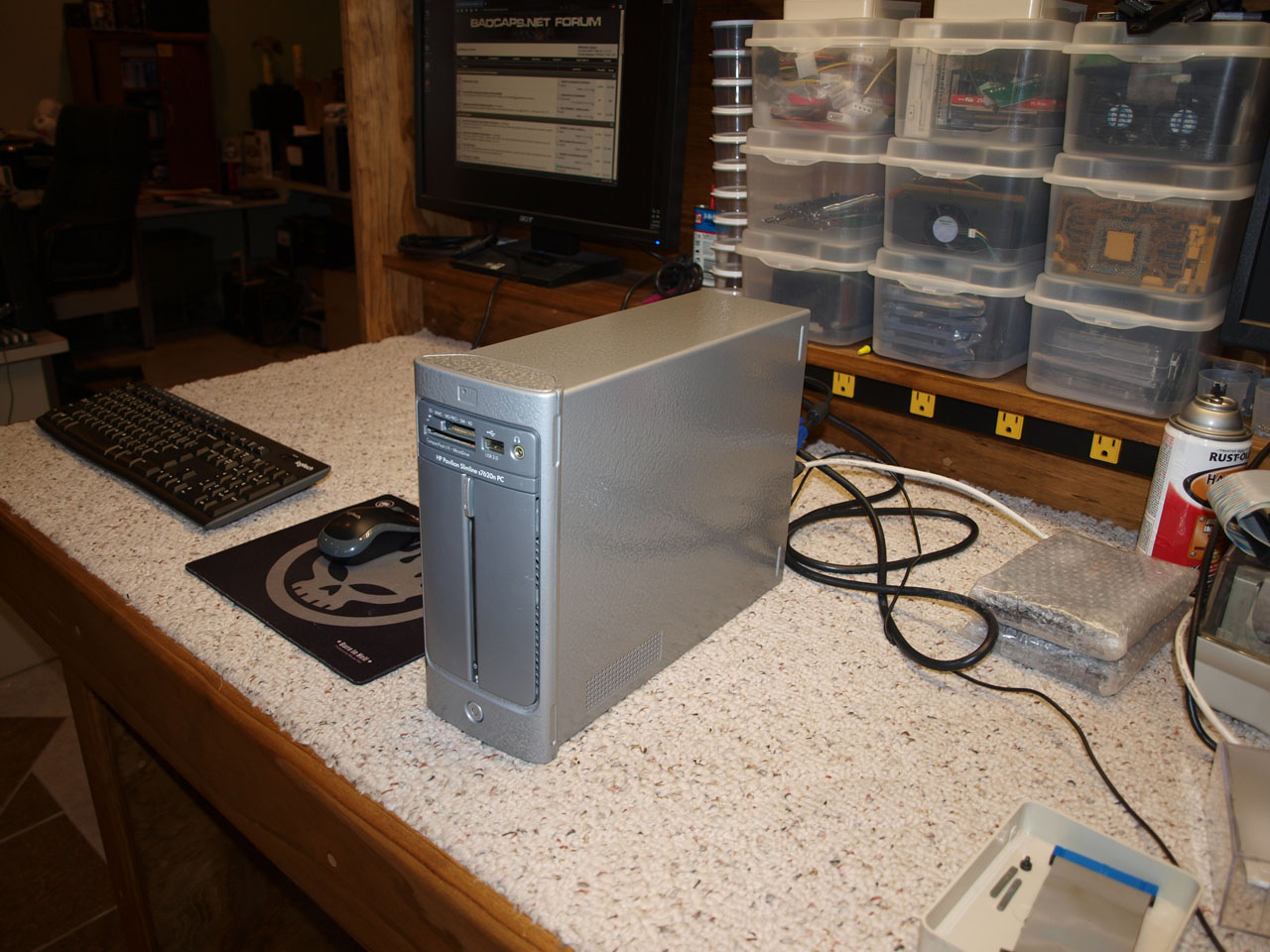 I was given a HP slimline s7620n about 2 years ago by a local shop. It was full of dead roaches, case scratched to hell, and from the house of a heavy smoker.....it sat in the garage since I got it, I never messed with it...and just kinda forgot about it. I came across it yesterday and figured I'd open it up and take the memory, CPU and HDD out of it and trash the rest.....well the 'fixer' in me said lets see what works and what doesnt. I cracked the ACBEL PSU open, sure enough, full of bad l-tec caps.... I hotwashed the motherboard & PSU only at that point, so if it can't be fixed, it'll go in the trash and no more time wasted. I recapped the PSU, that brought the PS and motherboard back to life.... It has a 1.8GHz 533fsb core solo CPU in it and 2gb ram. It had a 250gb HDD in it. The RAM was maxed out, I tried up'ing it to 4gb (even after a BIOS update), and it wouldn't run....atleast with the modules I tried. I found the max CPU it could run in my junkpile, which was a 2.33 C2D 667FSB....