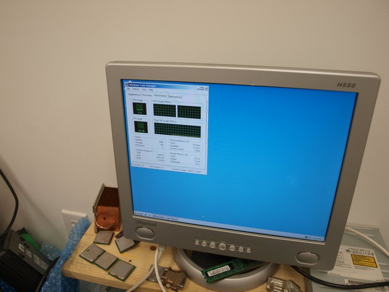 By the way, I think I spoke too soon about that 19" Dell LCD because it didn't work today. I was trying to set up a computer a few hours earlier and decided to use this monitor instead of my normal one. After connecting everything and hitting the power button on the computer, the the monitor began cycling on and off. Funny, cause the last 3 times I tested it, it worked fine. I now do see why it was thrown away. My guess would be bad caps. The temperature has dropped too since the last time I tested this monitor, so that kind of confirms it. Hopefully a simple recap should fix it. I'll leave that as a project for later this week, though :p . Off to installing Windows on the trash-picked NetServer E800 now .