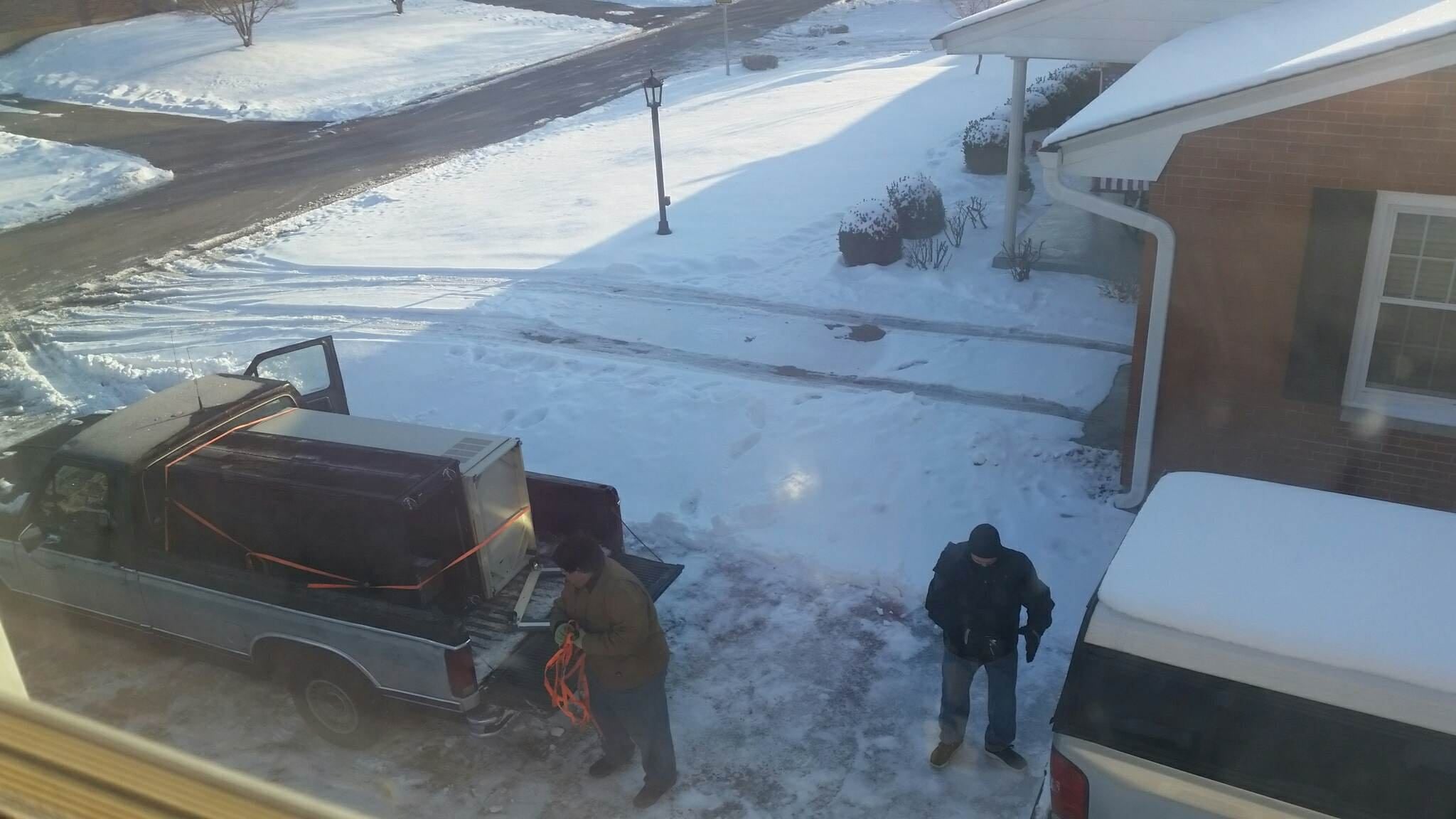 These were found by my wife/mom at Purdue University Surplus... $50 for the APC rack, $40 for the enclosed monster. Topcat and my end worked out a deal (not disclosing, other than that I got two 22" 1080P LCD's as part of it), and I had some other goodies for him too (which he didn't post, funny enough?), so it all worked out... Other than the snow!