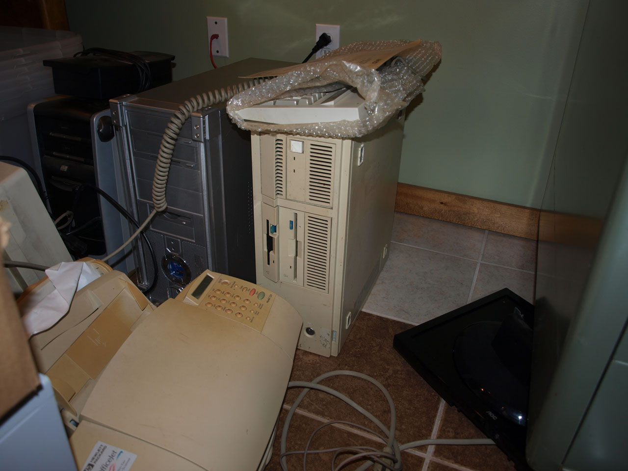 Some HP system with an AMD Athlon in it....a Toshiba Satellite P4-era laptop without the charger....but tested off my bench supply, it works. A newer 24" Samsung LED IPS monitor, a 22" LED AOC monitor, and the usual laundry basket full of keyboards, mice, and other whatnots that breed at night.if you find these attachements useful please consider making a small donation to the site