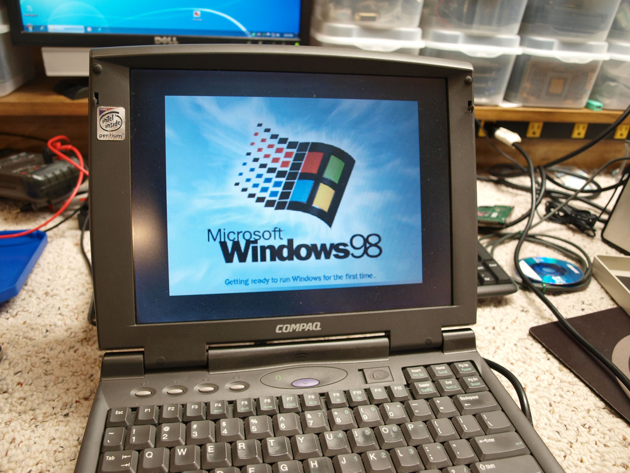 Then there's this! Old Compaq Armada 1530DM, Pentium classic 133 w/ 32mb RAM. 1.4GB HDD. Had a 'power-on' password on it, wouldn't boot without knowing or clearing it....had a hell of a time clearing that off...but I got it....just to find the OS hosed. Probably win95, I couldn't tell.